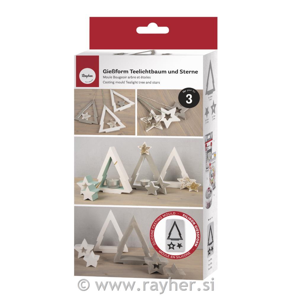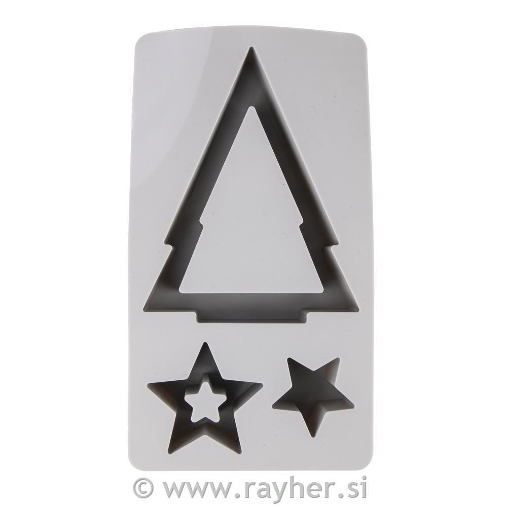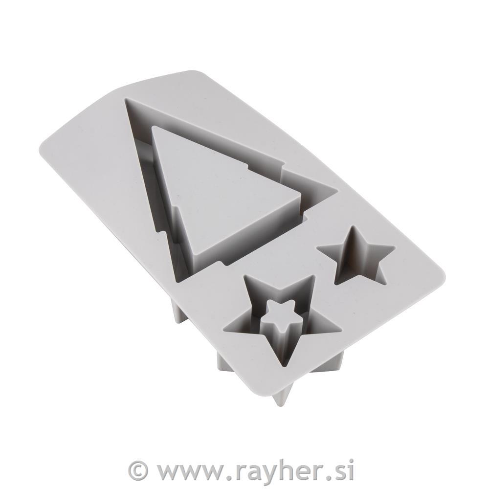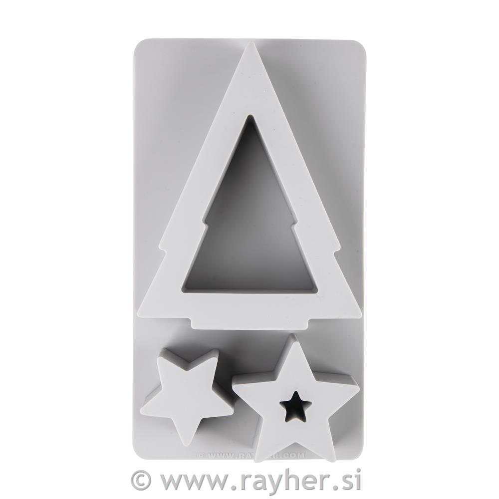 • Silikonski kalup za svečke Smreka in zvezde, 14,5 x 26 x 4 cm, 3 motivi