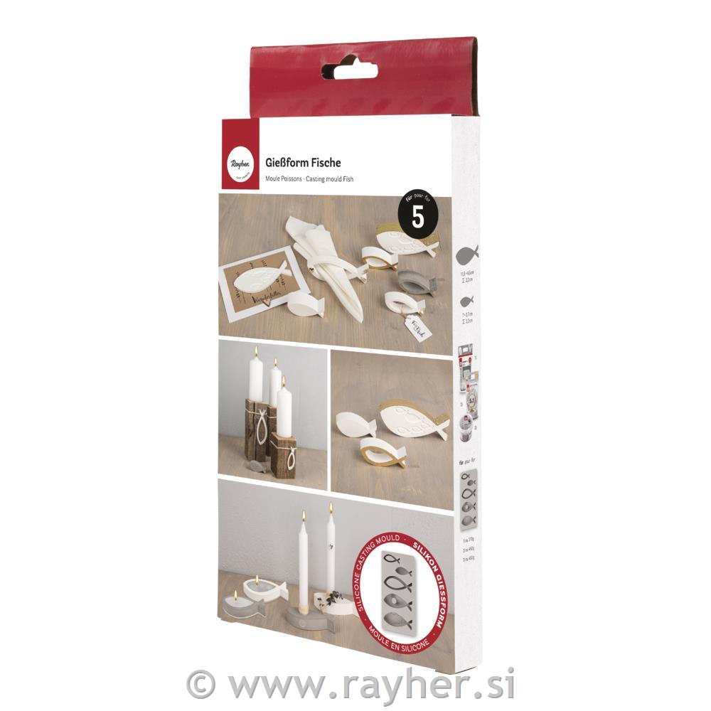 Dimenzije motivov: velika riba 11,8 x 4,5 cm, majhna riba 7 x 2,7 cm, vsaka globina 2,2 cm.