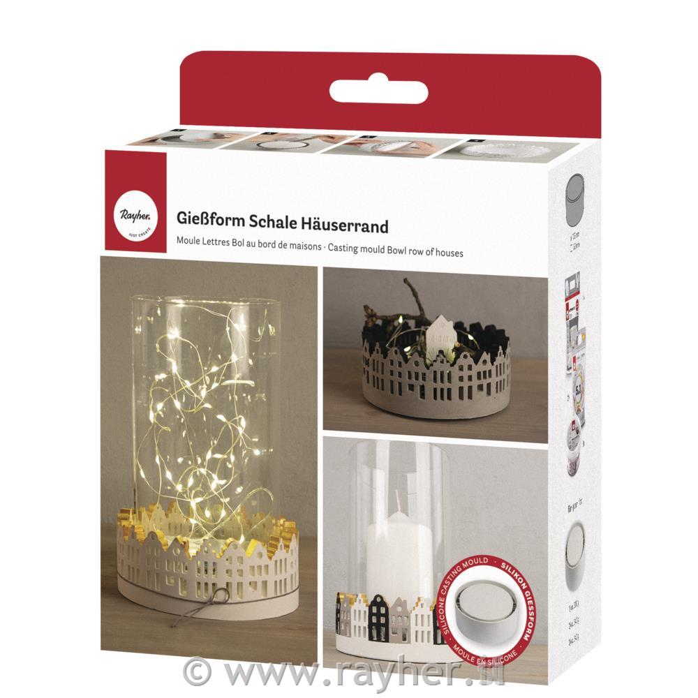 Silikonski model za vlivanje – posodica z robom motivi hišk, premer 13,2 cm, višina 5 cm