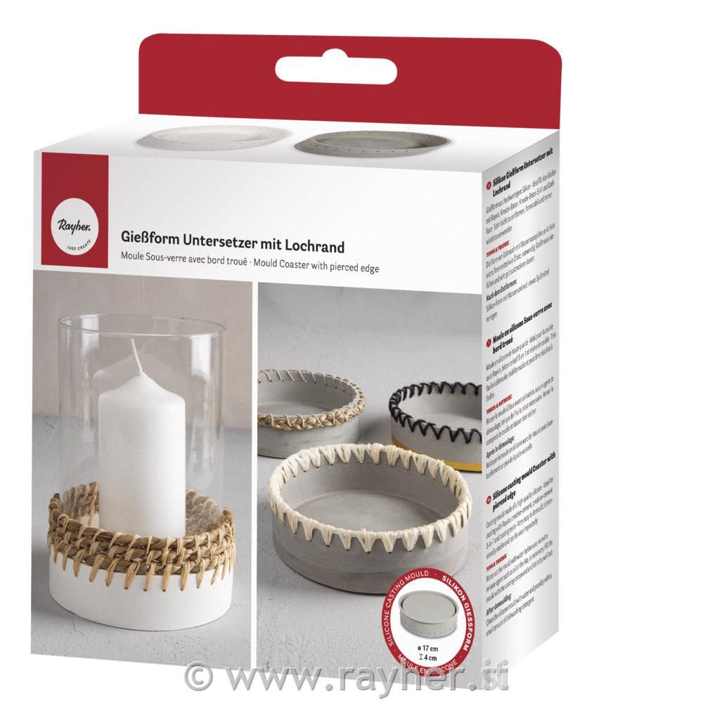 Iščeš nekaj več kot le običajen podstavek? Ta DIY kalup ti omogoča, da izdelaš čudovit dekorativni podstavek iz betona, Raysina ali smole – s posebno oblikovanim luknjičastim robom, ki ga lahko prepletaš z vrvicami, rafijo, špagami ali žico. Preprosto popolna kombinacija naravnih materialov in ustvarjalne svobode.