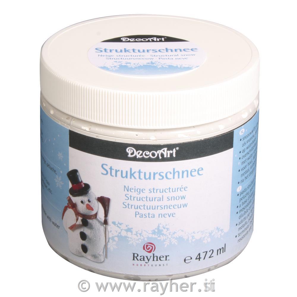 Strukturni sneg pred uporabo dobro pretresemo, po želji mu lahko primešamo akrilne barve ali pa ga prebarvamo, ko je posušen. Suši se 2-3 ure.