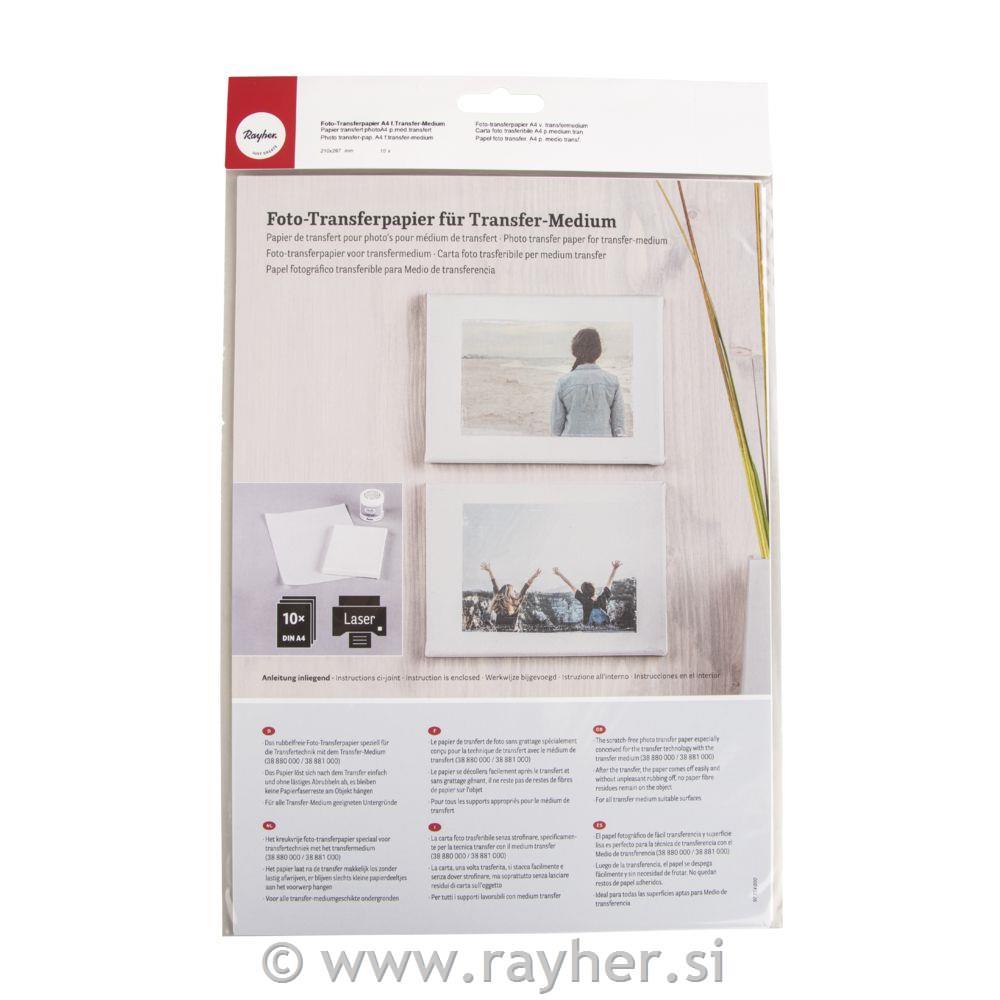 V setu je 10 pol foto transfer papirja formata A4.