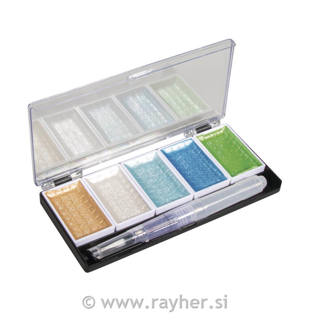 • Akvarel Metallic, Blue-green, 5 barv 25x45mm, +H2O čopič