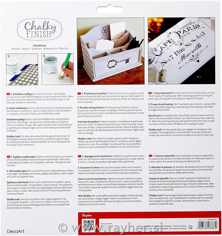 rayher.si Hobi program Barve, flomastri, konture, mediji, laki, hobi čopiči Barve hobi; Akrilne barve, barve za tekstil, svilo, porcelan, steklo,... Chalky Finish kredne barve in pripomočki za Vintage izgled Pripomočki in šablone za barvanje