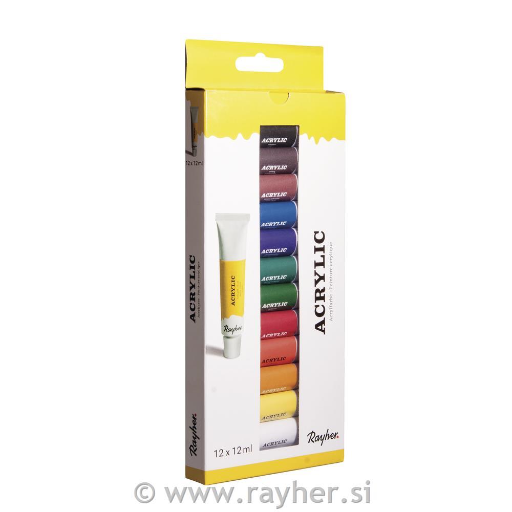 RAYHER set akrilnih barv vsebuje 12x12ml tub akrilnih barv