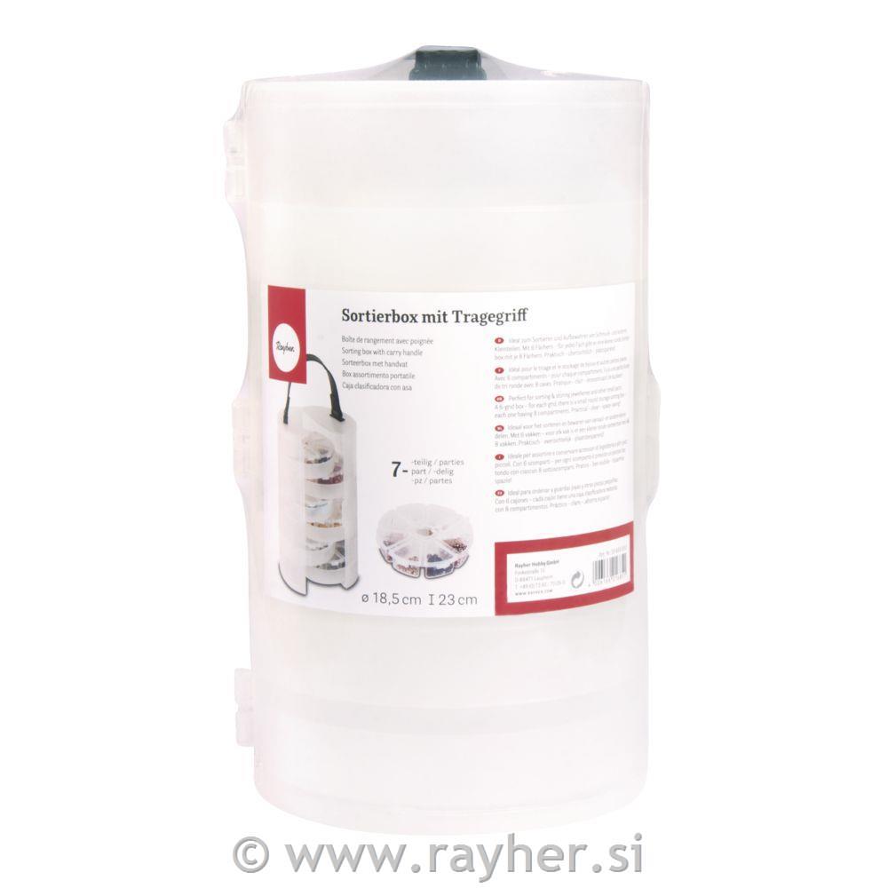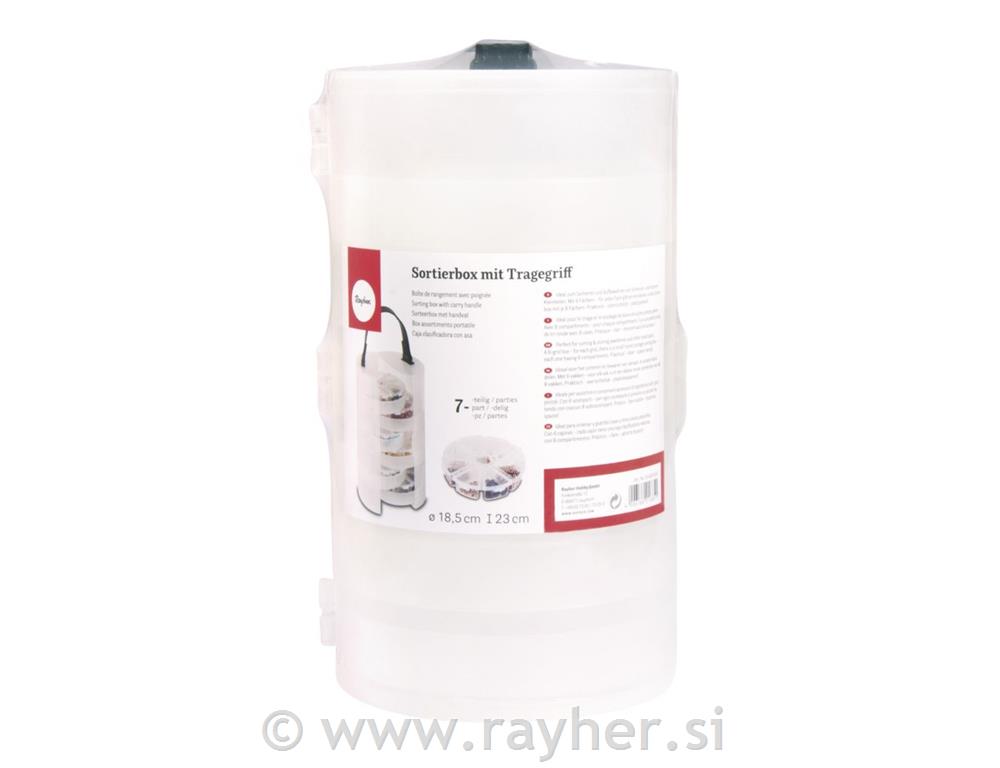 Sorting box round with carry handle, 13c, 23cm, incl. 6 inserts a 8 compartments