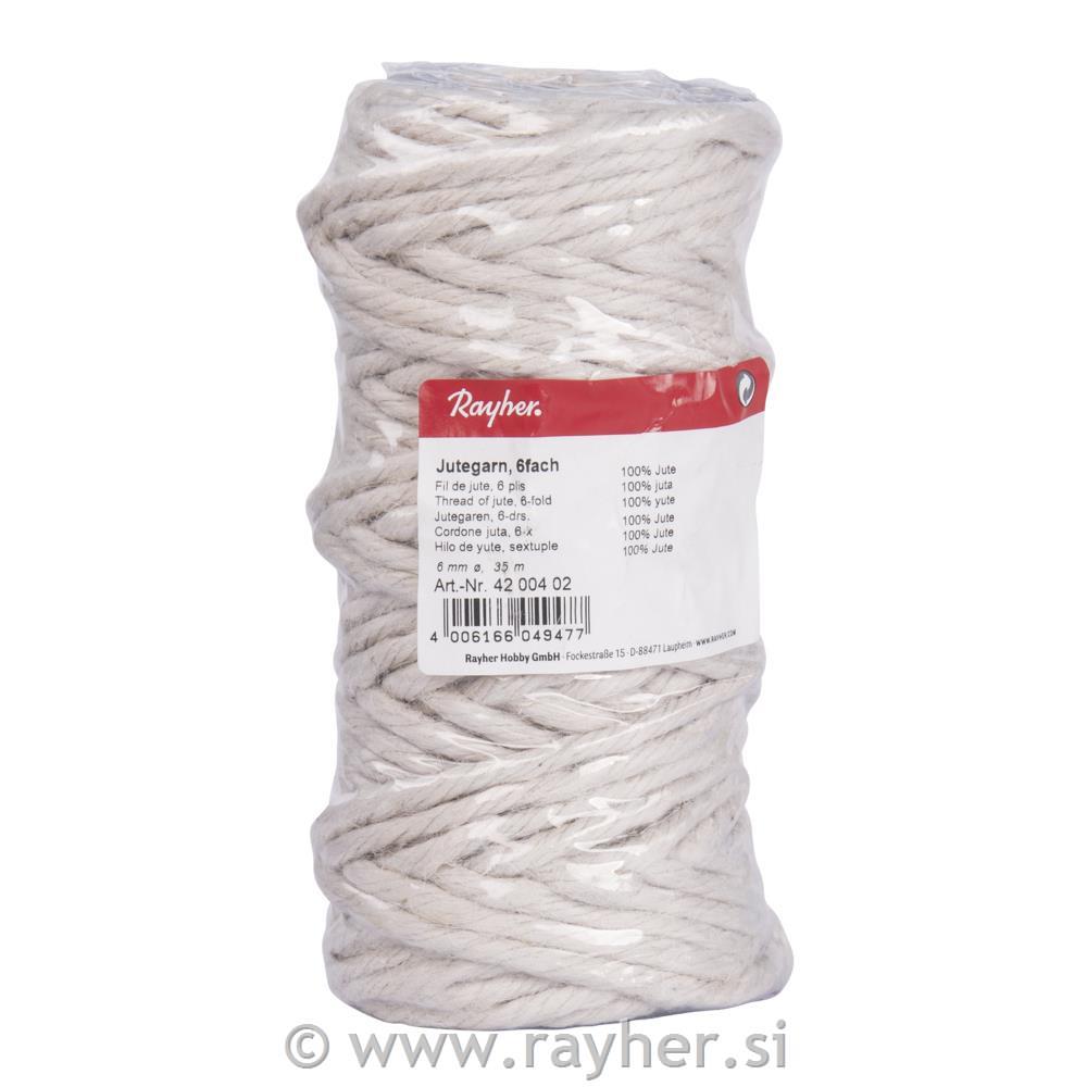 Thread of jute, 6-fold, 6 mm o, white,