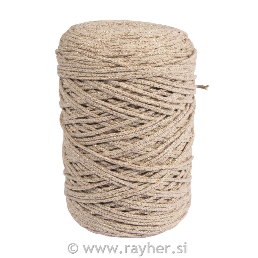 Vrvica jarn z zlato nitjo, 2mm, peščena, 240m, 250g