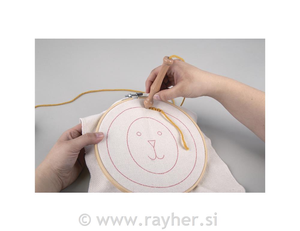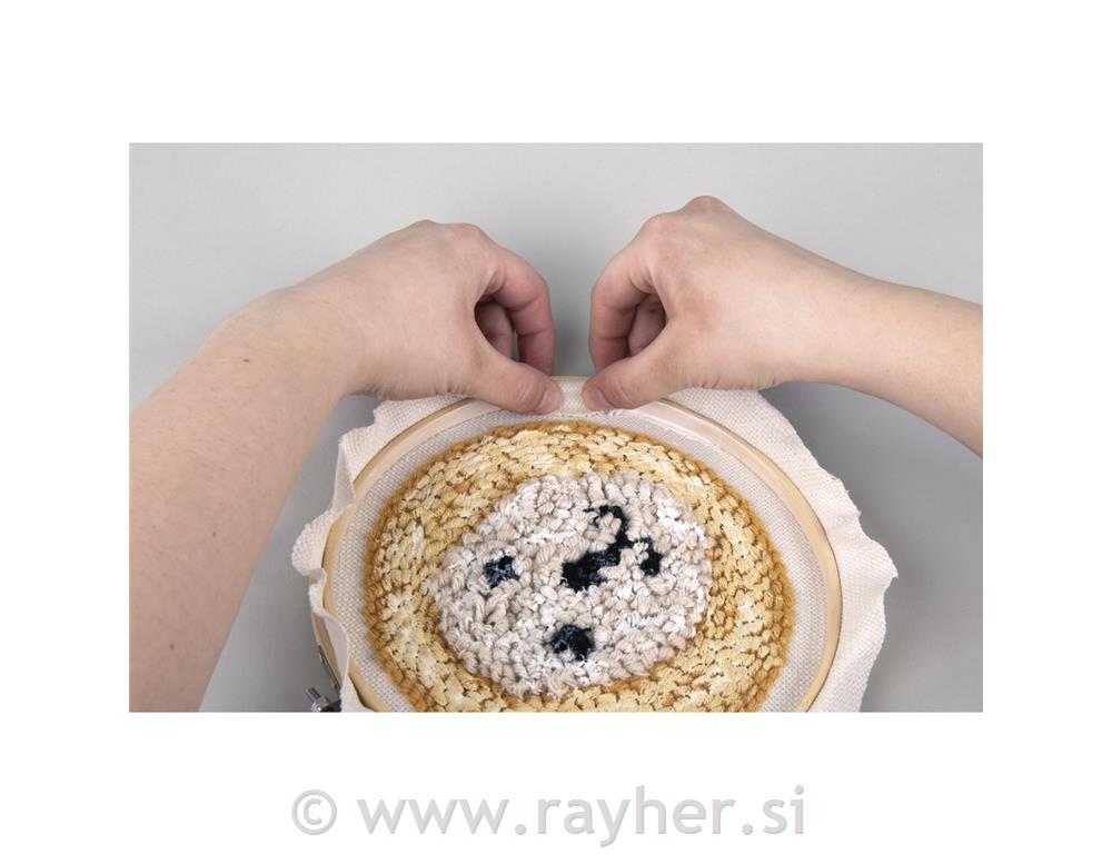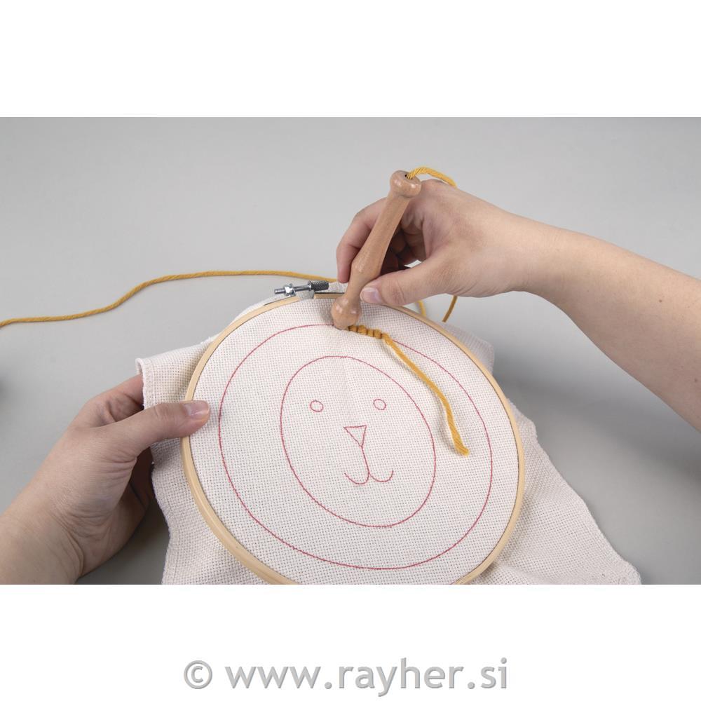 Priložena je Punch igla za vezenje s 3D videzom. Prejo z iglo za prebadanje v tesnih zankah od zgoraj zašijete v tkanino in v kratkem času ustvarite prav posebno umetniško delo. Komplet za vezenje vsebuje vse, kar potrebujete za izdelavo fantastičnega dekorativnega predmeta. Okrogli okvir po končani izdelavi umetnine ostane kot okvir za slike s posebnim čarjem. Odlično tudi za začetnike.
