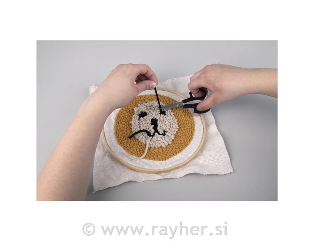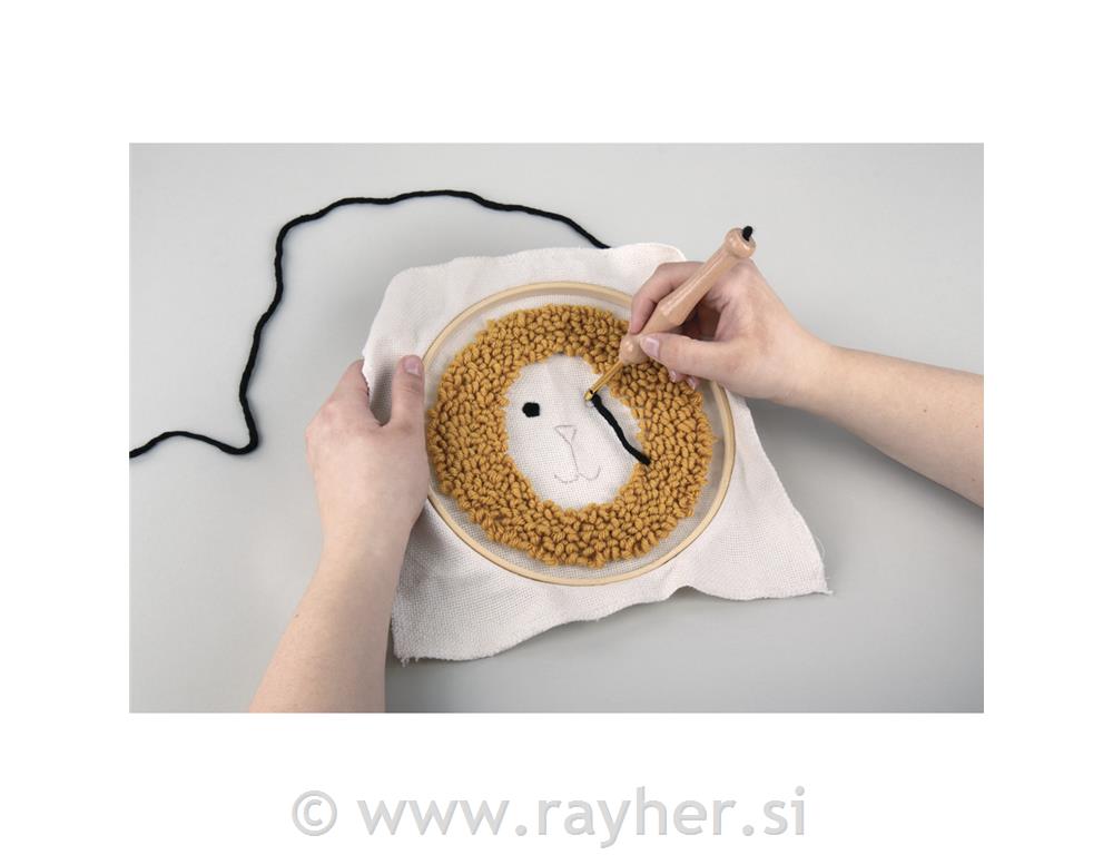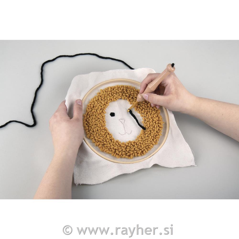 Vezenje je zabavno, luknjanje pa še bolj. Tehnika je nekoliko drugačna od vezenja in tudi rezultat je videti precej drugače. S kompletom lahko ustvarite puhasto levjo glavo s 3D videzom.