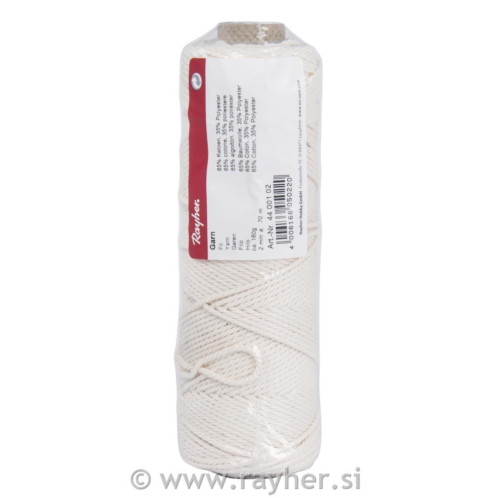 Bombažna preja iz 20 % poliestra in 80 % bombaža. Je popolnoma odporna na trganje in je primerna za različne ustvarjalne projekte; od makrameja, nakita, dekoracije,...