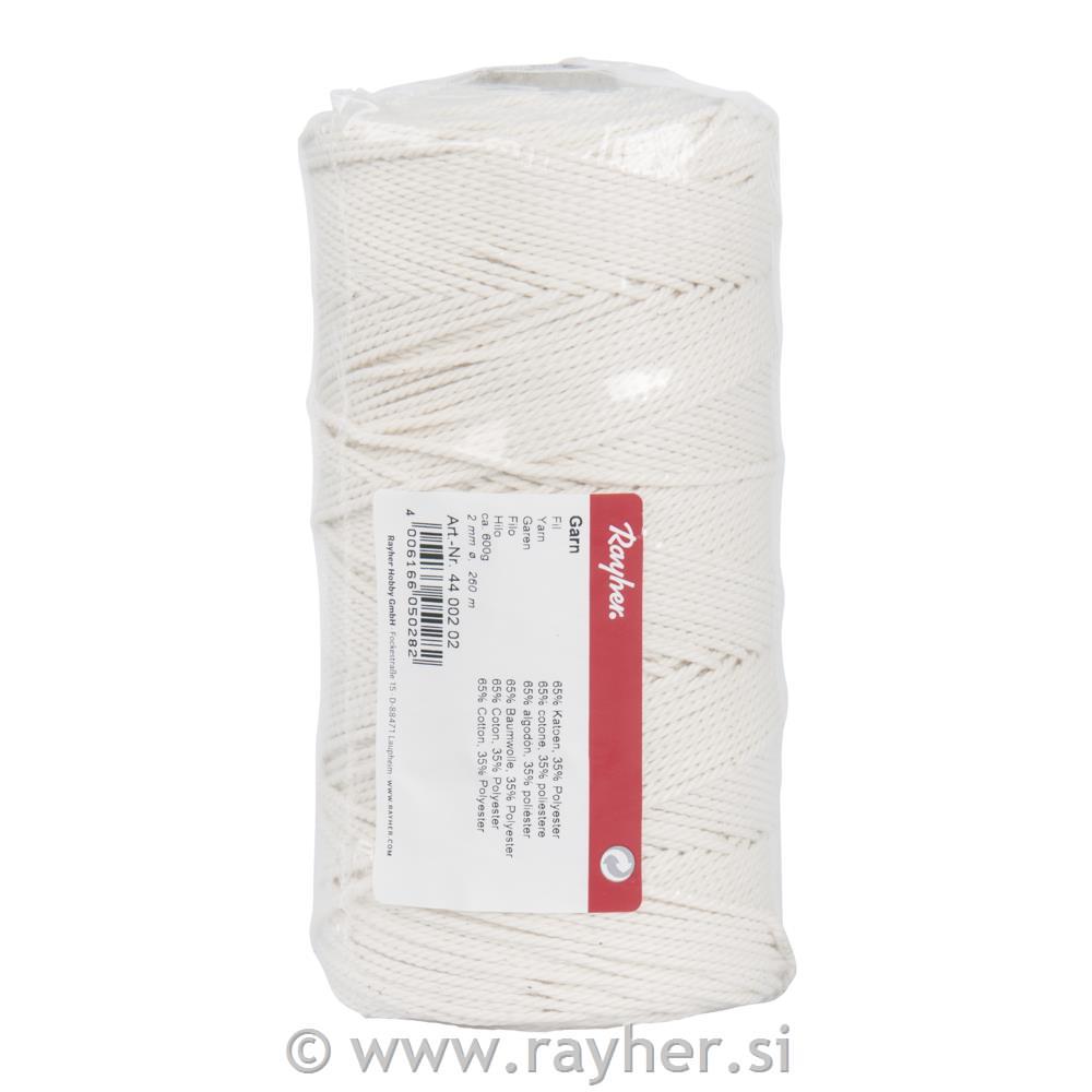 Bombažna preja iz 20 % poliestra in 80 % bombaža. Je popolnoma odporna na trganje in je primerna za različne ustvarjalne projekte; od makrameja, nakita, dekoracije,...