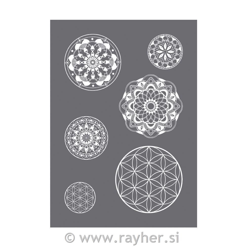 Šablona z motivi mandal, ki vam bo pomagala označiti različne izdelke; od tekstila do lesa.