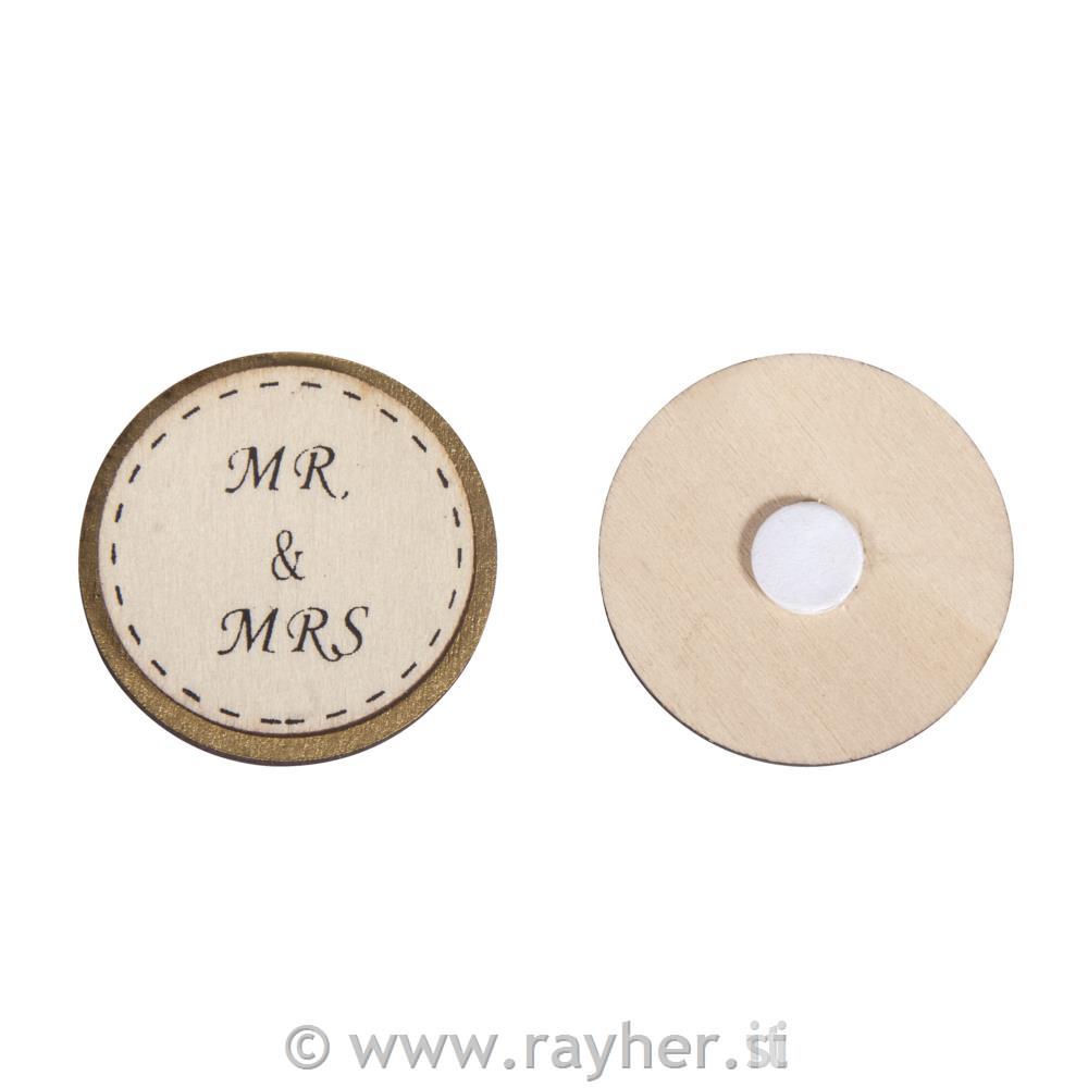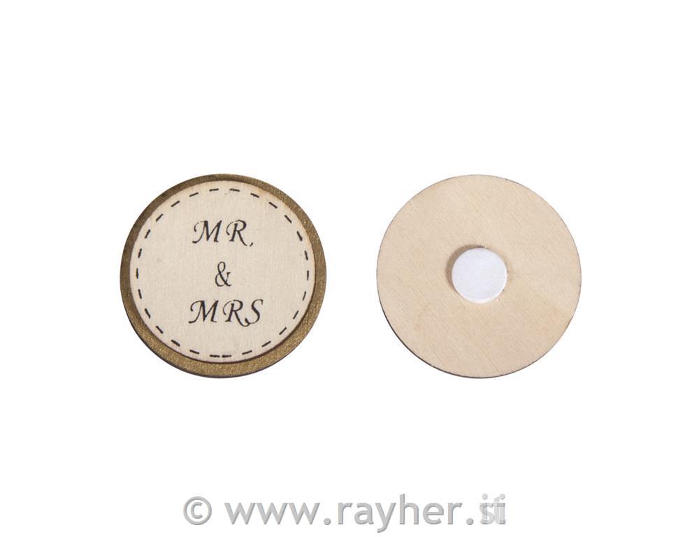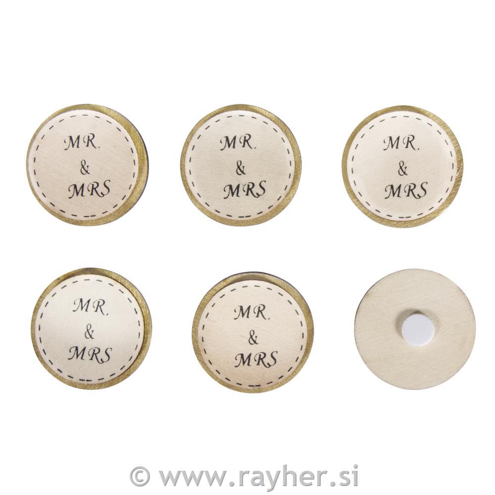 • Leseni okraski "Mr & Mrs", 3.5cm, samolepilni, 6 kos