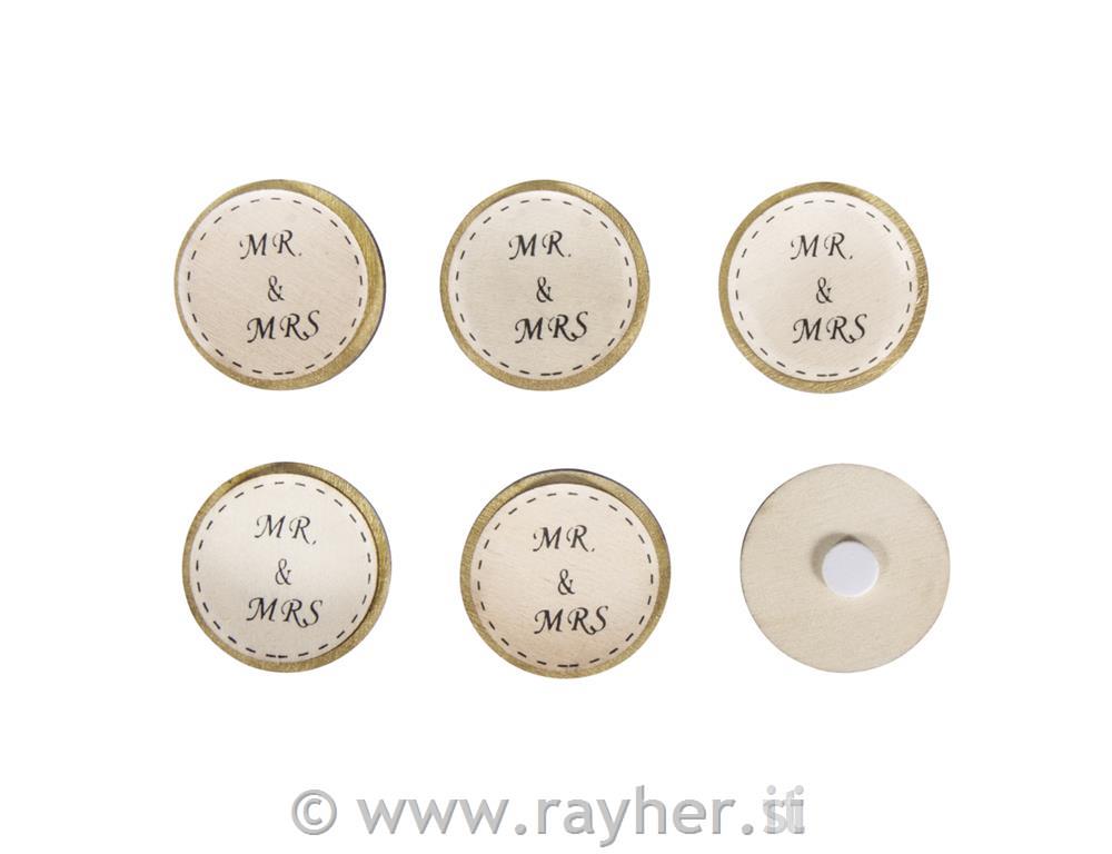 Leseni okraski "Mr & Mrs", 3.5cm, samolepilni, 6 kos