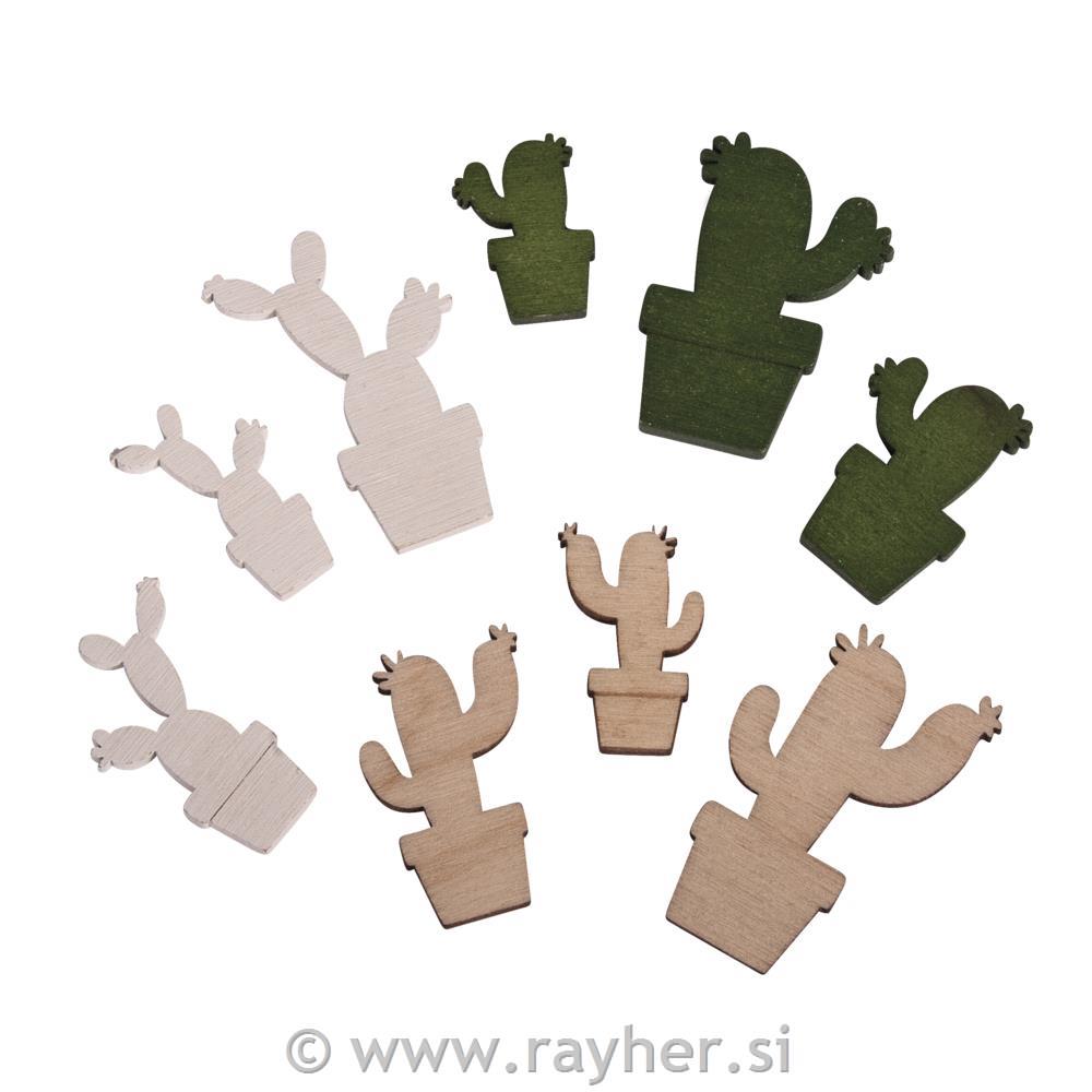 Small wooden objects Cacti, FSC 100%, 1.4-2.5x2.1-3.8cm, tab-bag 18pcs