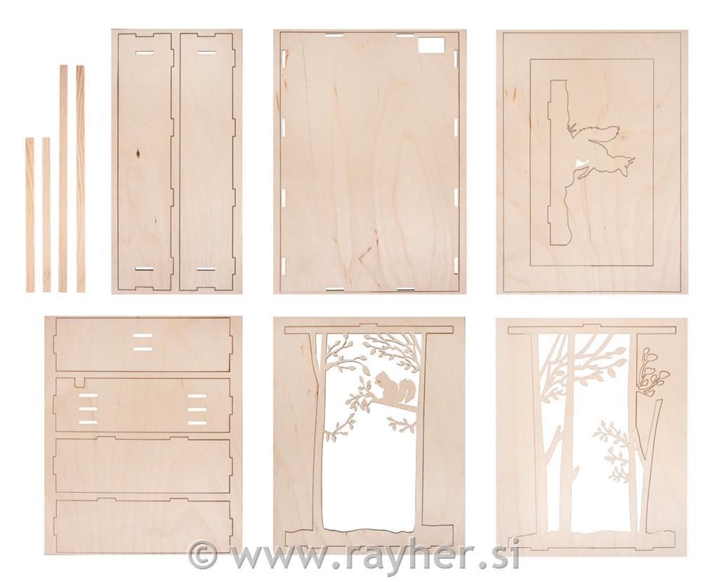 Lesena sestavljanka v okvirju 3D, V gozdu