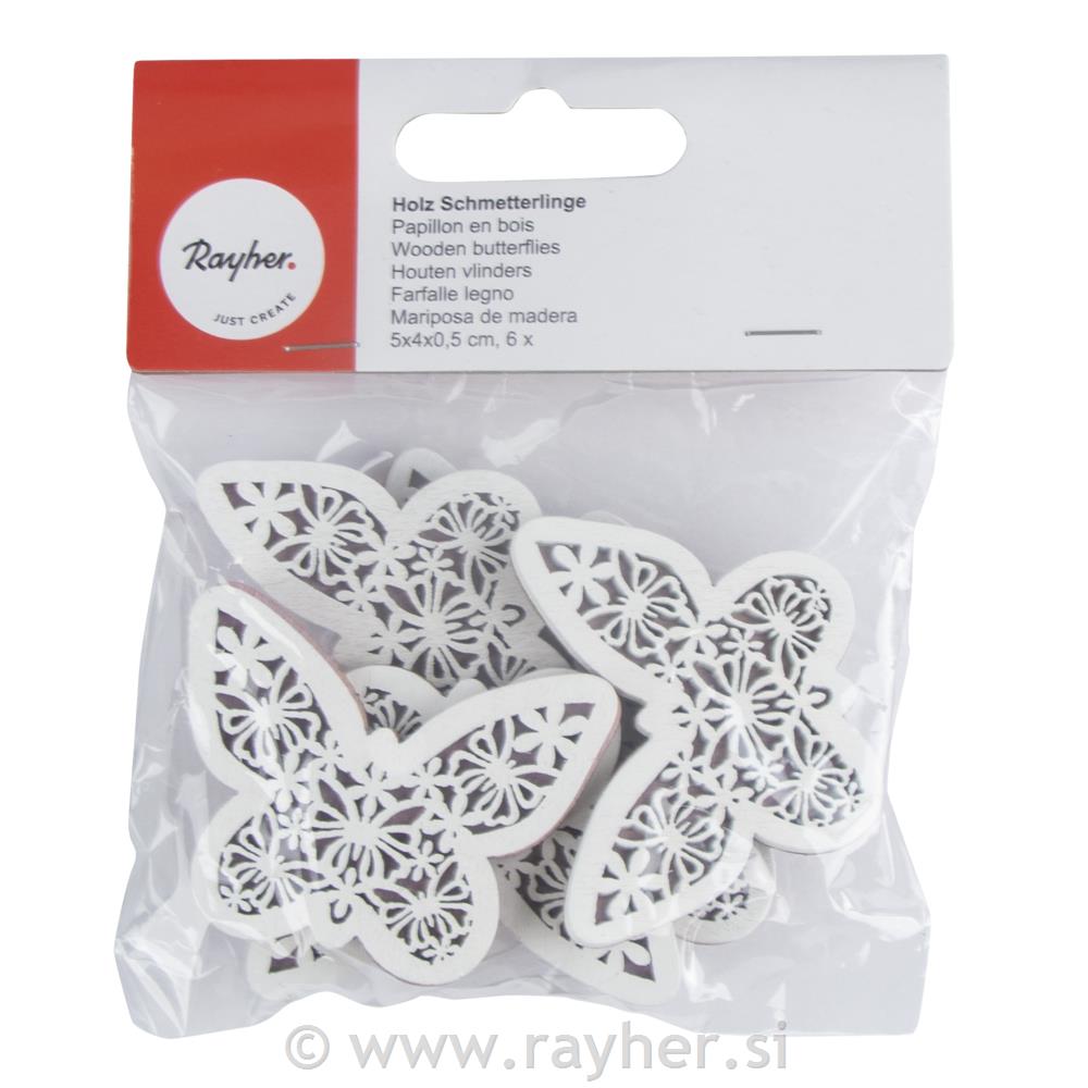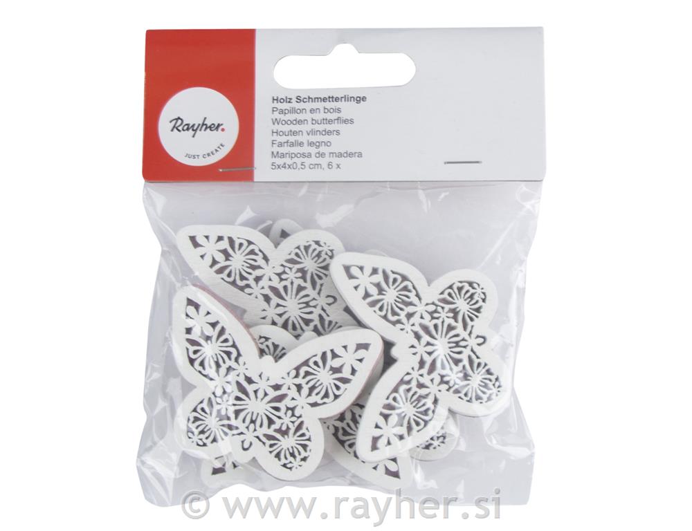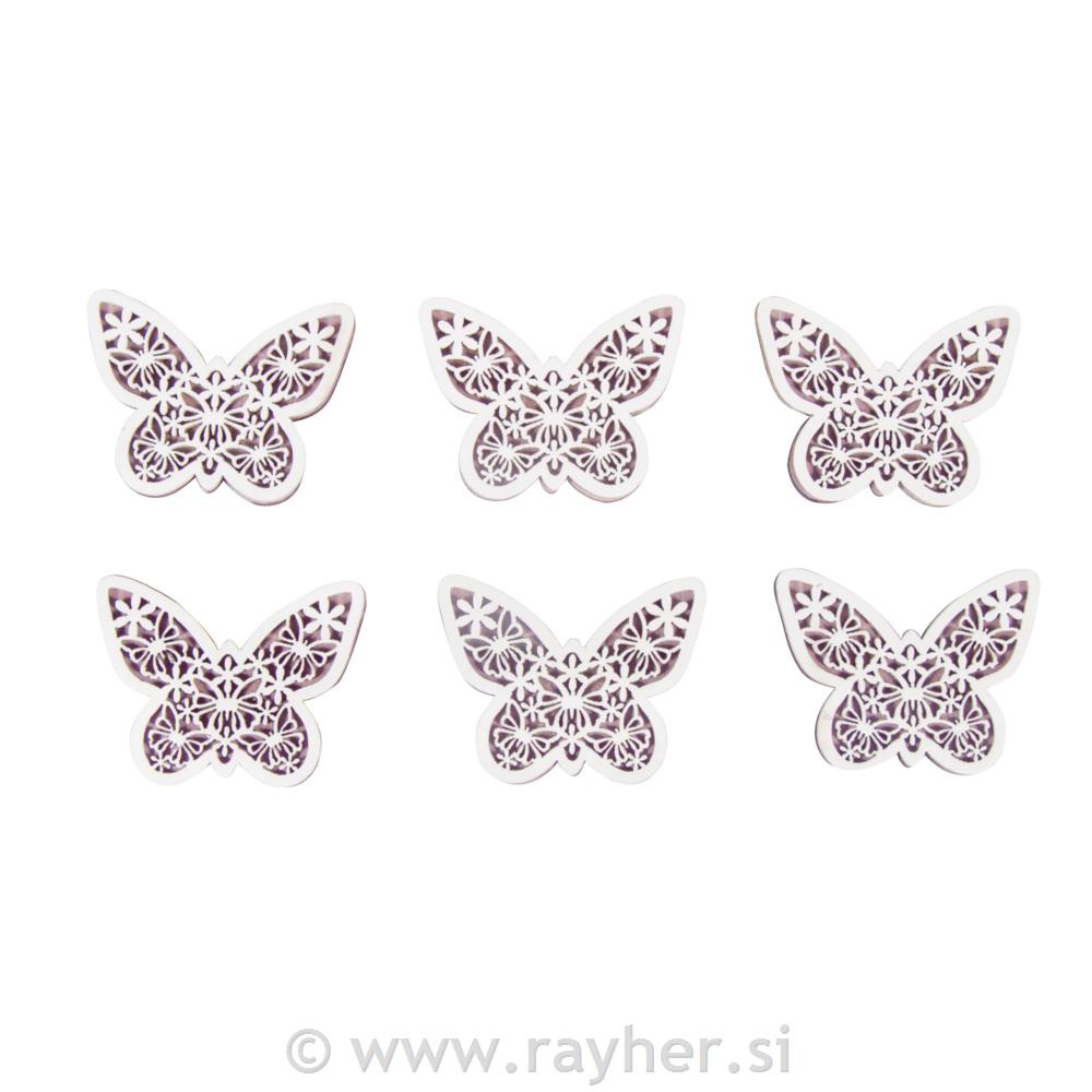 Leseni okraski, Metulji, 5x4x0,5cm, 6 kosov