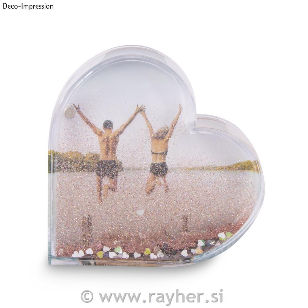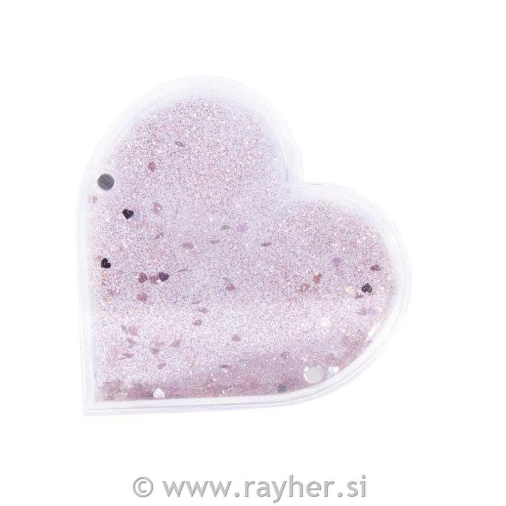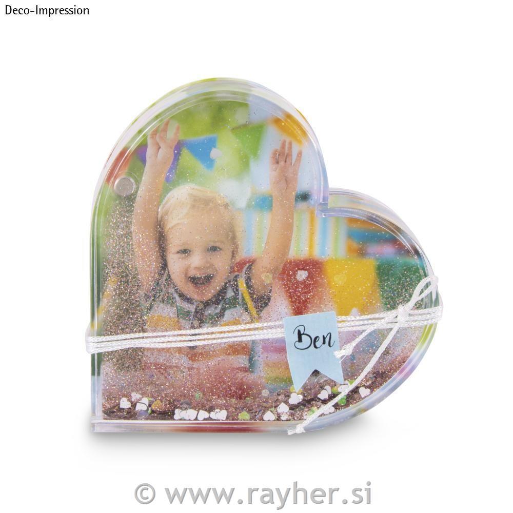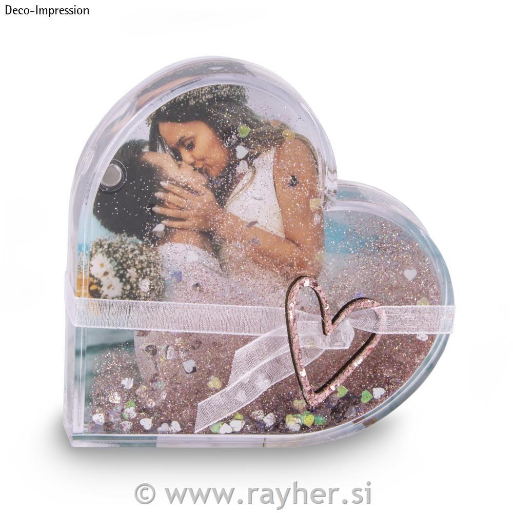 Akrilni magnetni okvir za slike (9,4x2,4x9,4 cm) je napolnjen s 4 različnimi dekorativnimi bleščečimi delci in srčki. Stresite okvir in bleščice bodo padale po sliki.