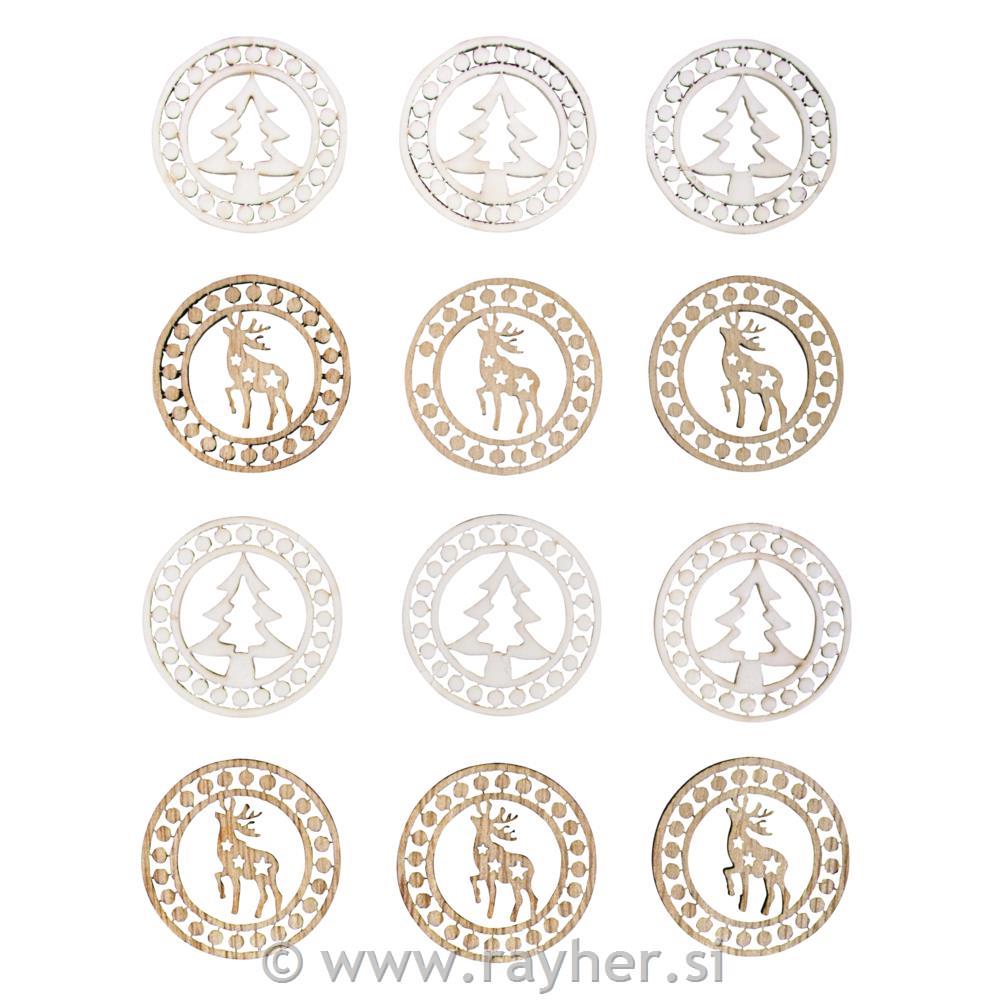 Leseni okraski Smreke + Jeleni, 3.2cm, 12 kosov