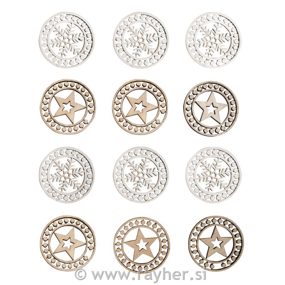Leseni okraski Zvezde+Snežinke, 3.2cm, 12 kosov