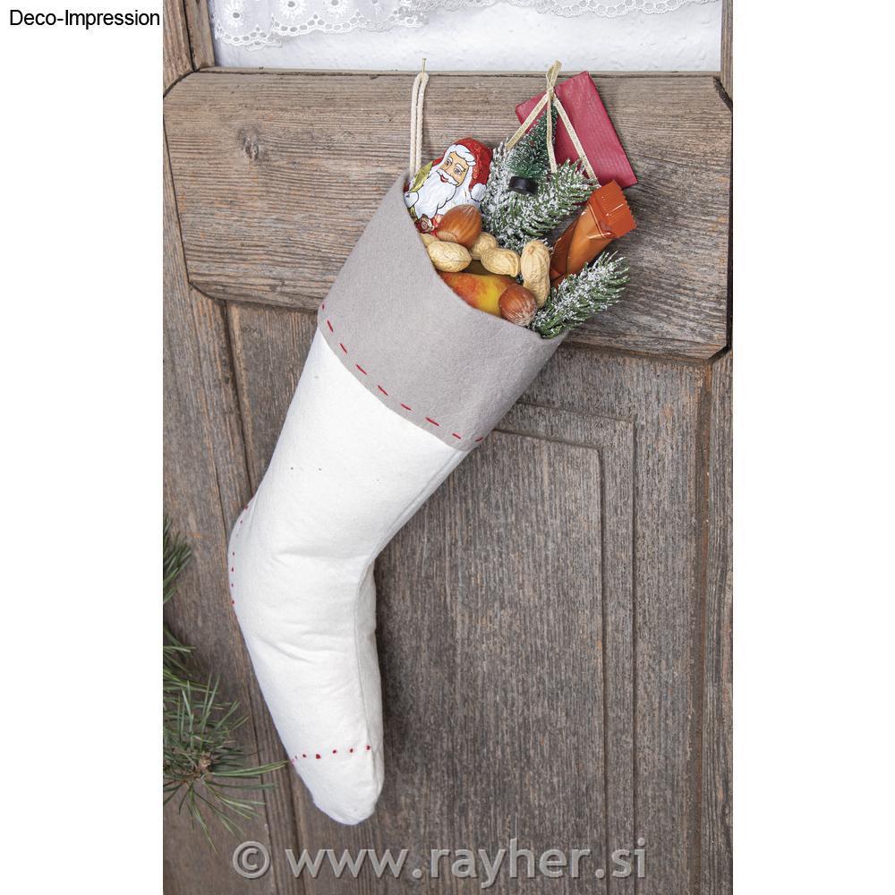 Božična nogavica za darila, 22x41cm z filc tkanine z vrvico za obešanje.