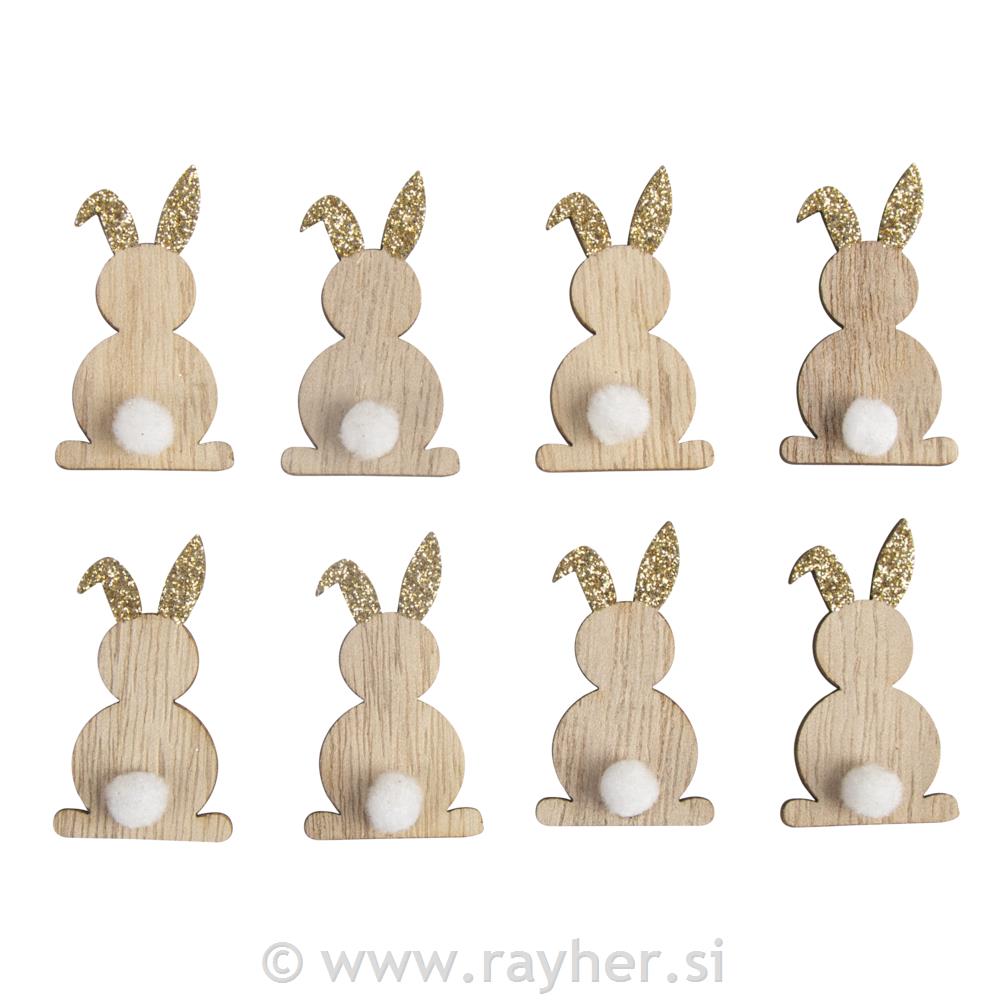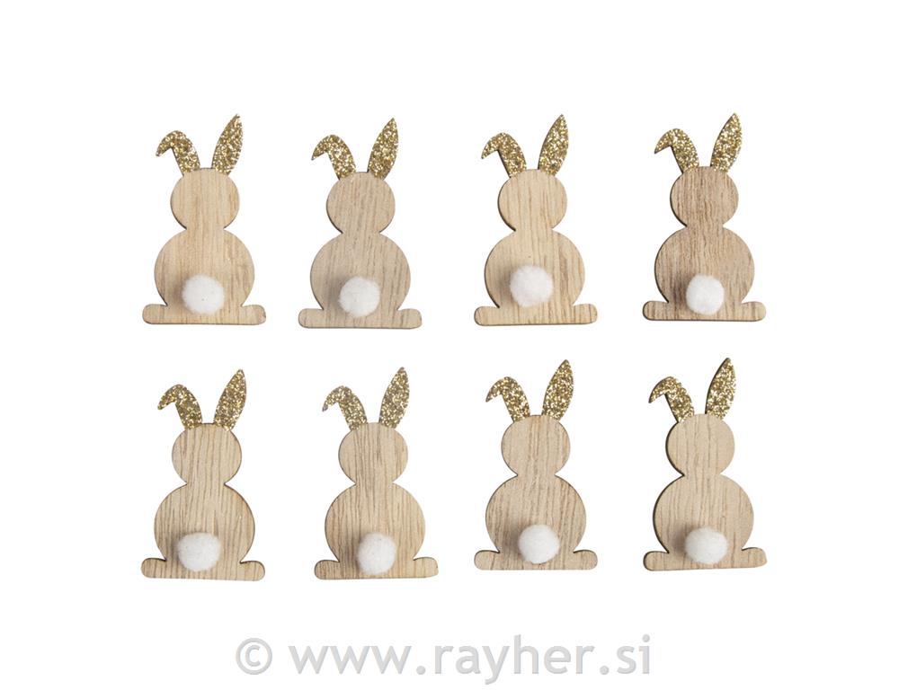 Leseni okraski Zajčki, zlati, 4.5cm, samolepilni, set 8