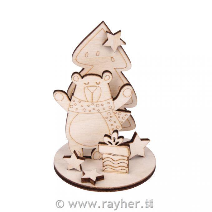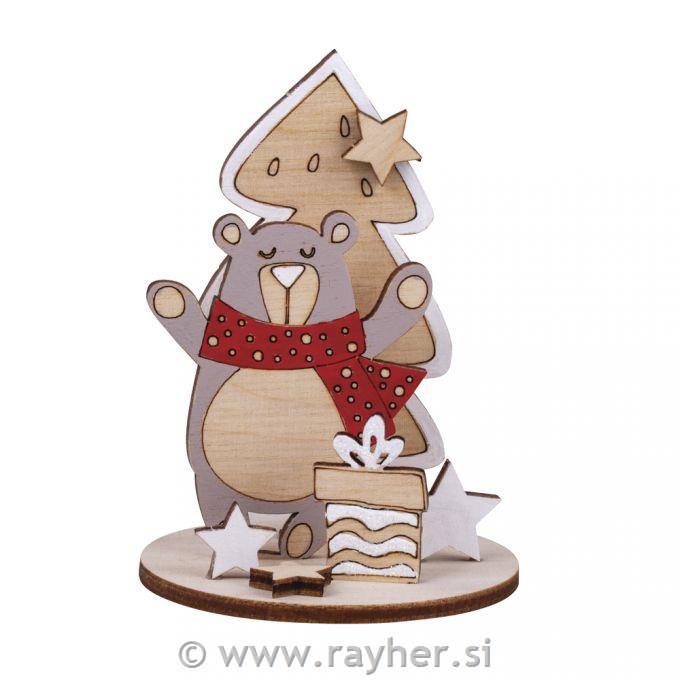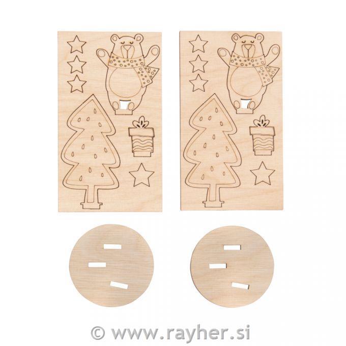 Vsebina: 2x leseni izrezi za "Zimskega medveda", višina 8,2 cm, o 6 cm.