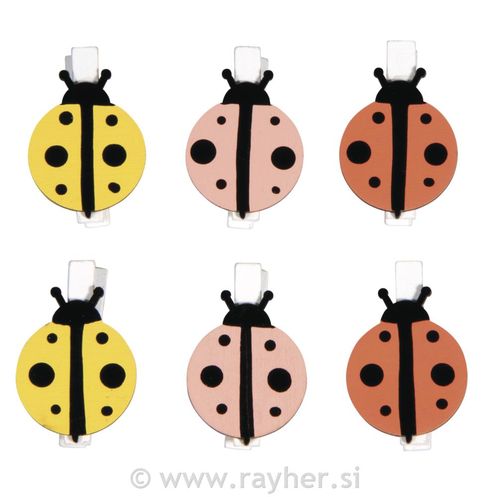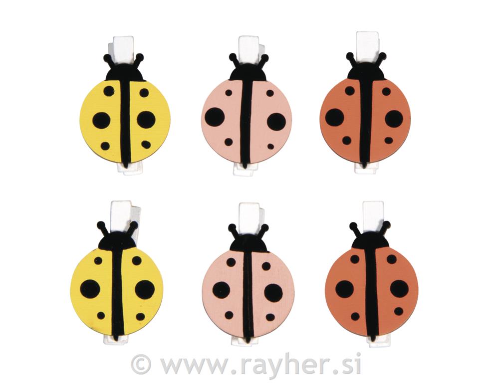 Lesene ščipalke, Pikapolonice, 2.8x4.8cm, set 6