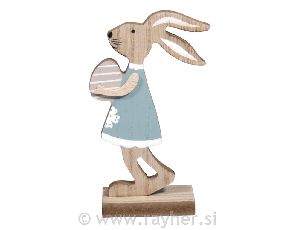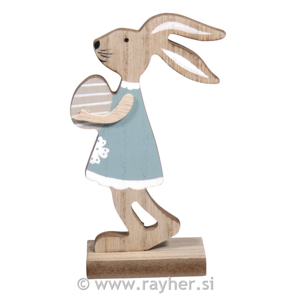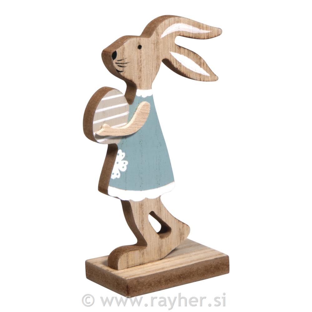 Ljubka lesena zajčica z velikonočnim pirhom je primerna za vse vrste velikonočno/pomladnih dekoracij.