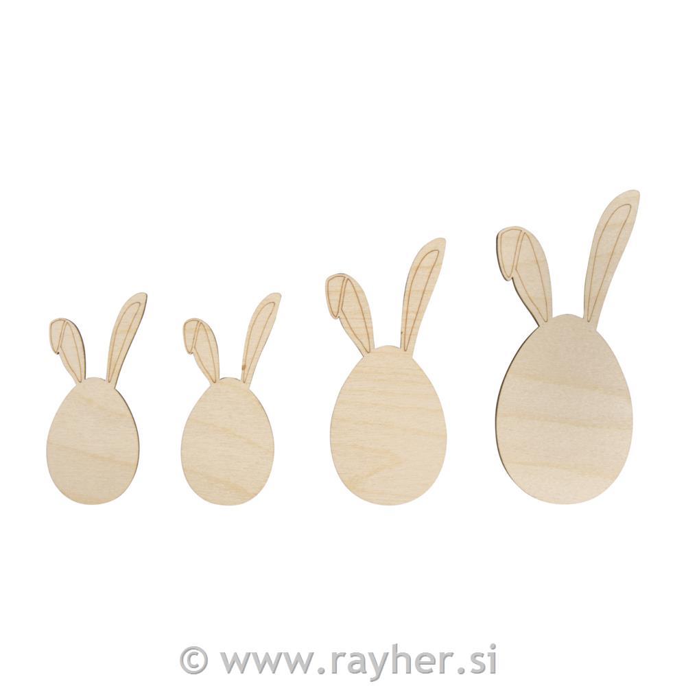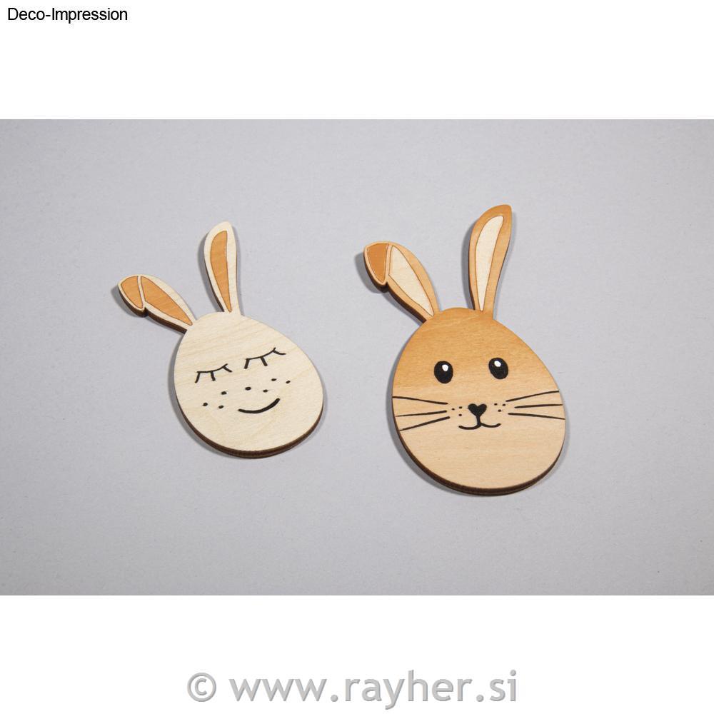 Naravni ali poslikani leseni okrasni zajčki so čudovita velikonočna dekoracija. Vsestranska uporaba na voščilnicah, darilnih ovitkih in vencih, kot namizni okras in še veliko več.