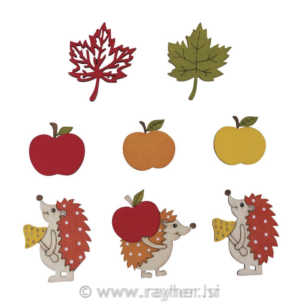 Leseni okraski Jesen, Ježki, jabolka, listi, set 8