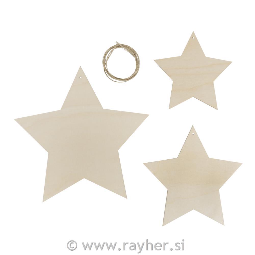 Vsebina: 3 zvezde + 60 cm vrvice iz jute, debelina lesa 3 mm