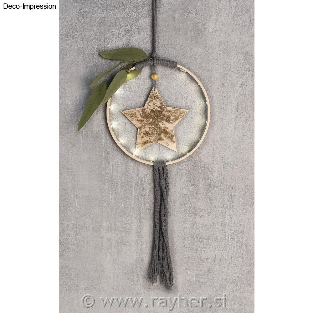 Lesene zvezde, ki so v čudovitem naravnem videzu lesa, pobarvane ali okrašene s teksturiranim snegom in bleščicami, pričarajo božično vzdušje.