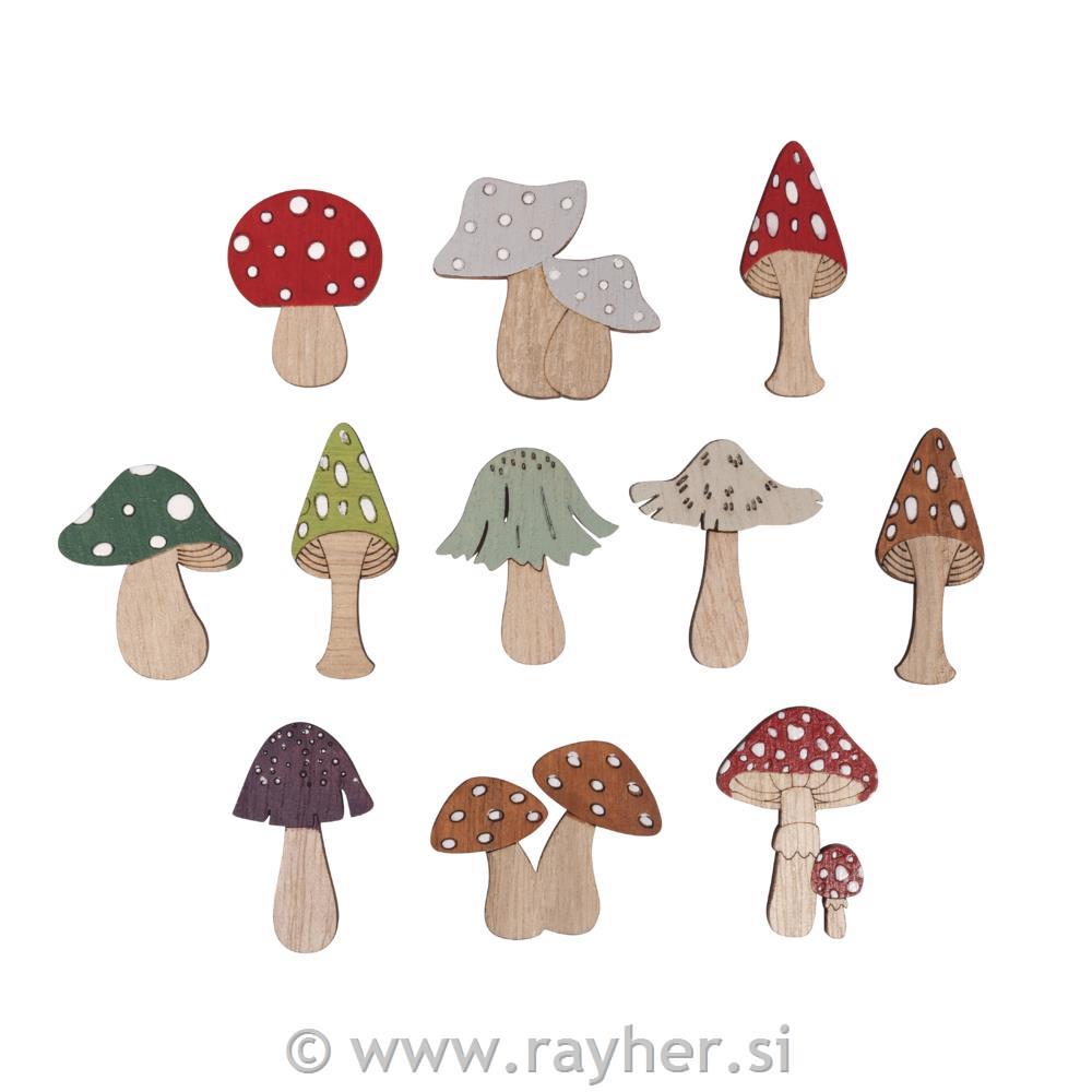 Leseni okraski Gobice 3,2-4,5 cm 11 kos