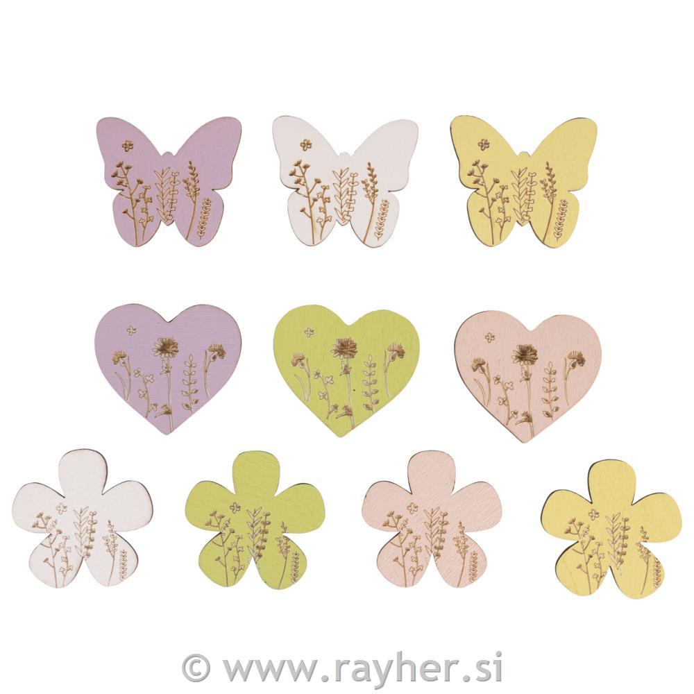 Leseni okraski Floral 3,3-3,6cm, 10 kosov