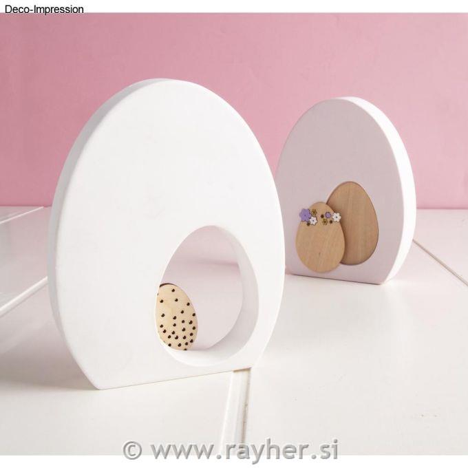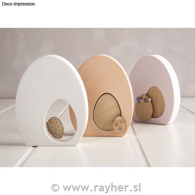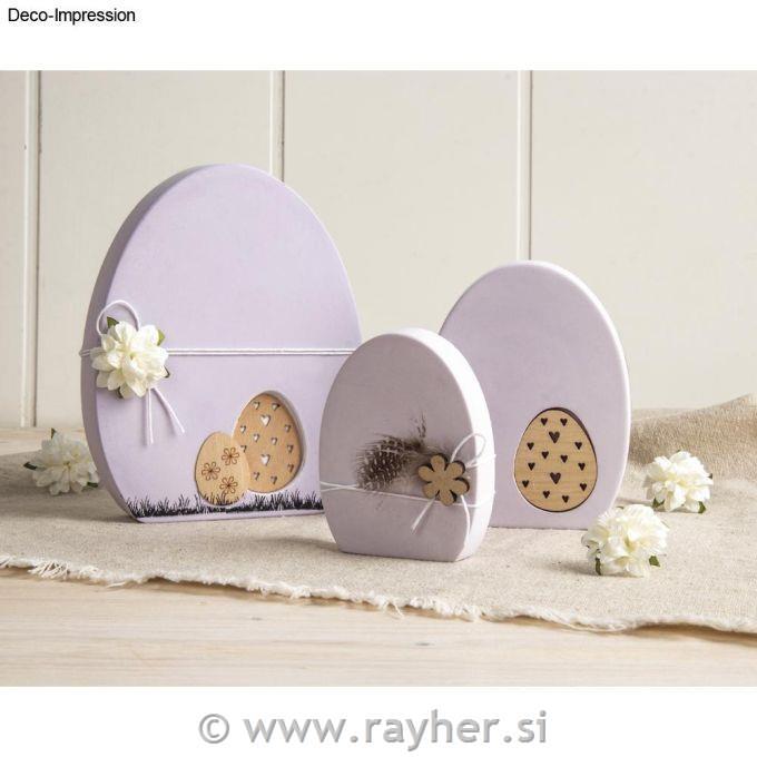 Naši vstavki za kalup velikonočna jajca (izdelek št. 30 241 000) so popolnoma primerni za te okraske. Tako nastanejo vdolbine, ki jih je mogoče individualno dekorirati, npr. s furnirjem velikonočni zajčki. (Naš okrasni model je ulit v kalup za litje PET – art. št. 36179000).