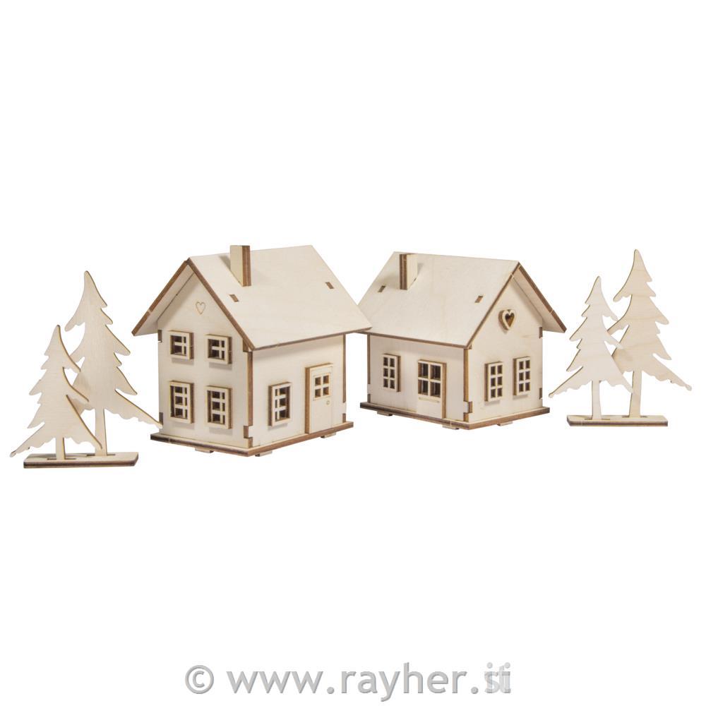 Leseni set za izdelavo hišic z lučkami, 46-delni