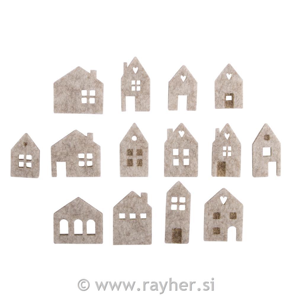 Mini filc hišice, velikosti 2,5 – 3,5 cm, set 14