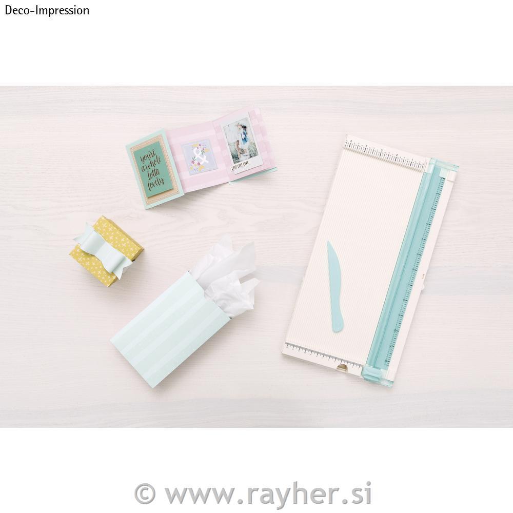 Vsebina: Trim & Score plošča (zložljiva) , mapa za kosti, rezalnik papirja, kvalitetno in natančno titanovo rezilo