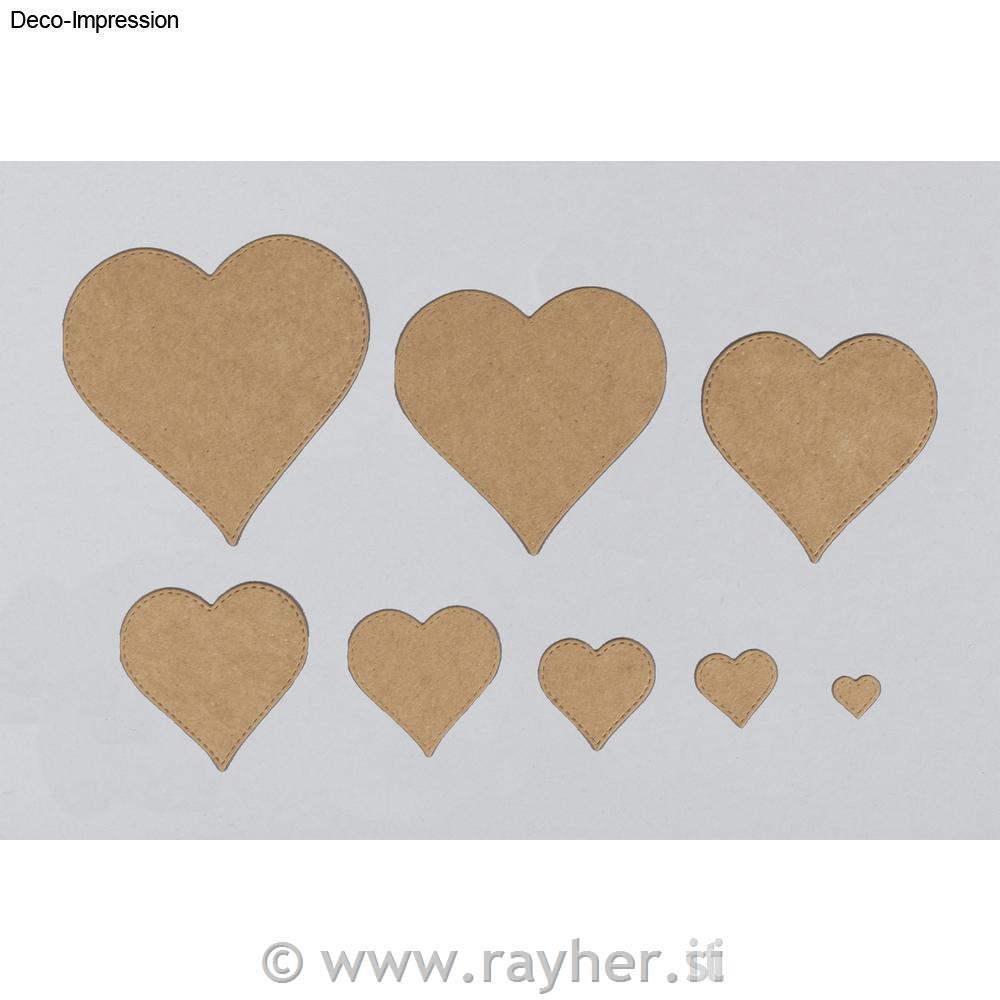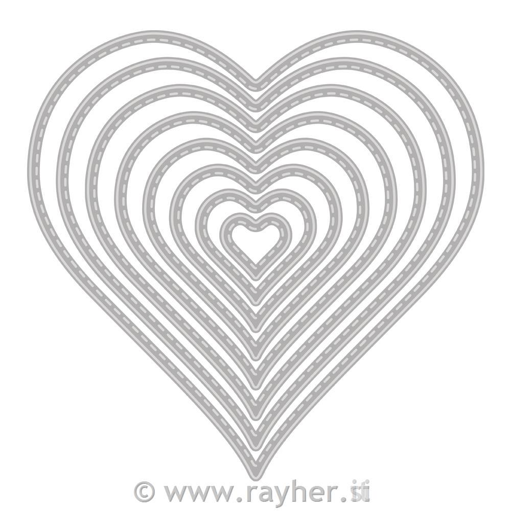 Šablone za izrezovanje „Srce“, komplet 8 šablon, z zgornjim šivom na robu. Videti je, kot da je izsekano srce obrobljeno s šivi.