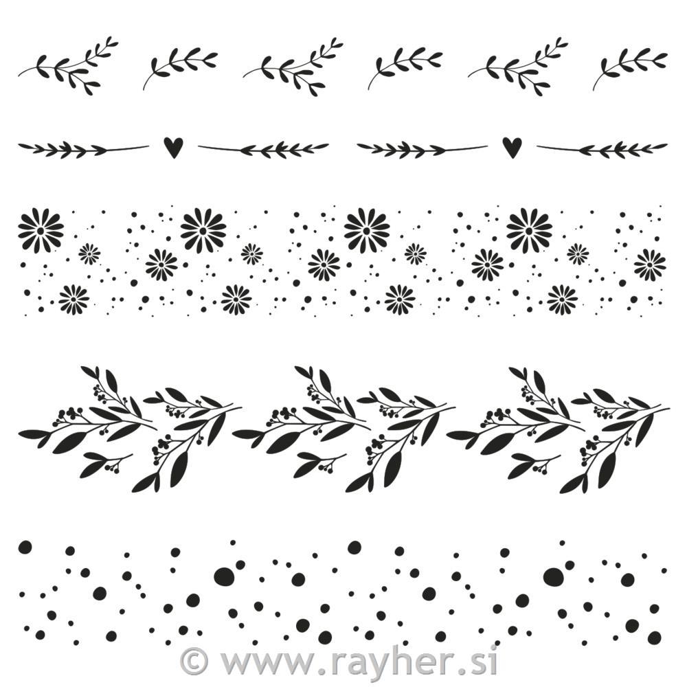 Nežne vejice, rožice, pike in srčki - s temi robnimi štampiljkami lahko ustvarite najlepše rezultate na voščilnicah, dodatkih za dom in še veliko več.
