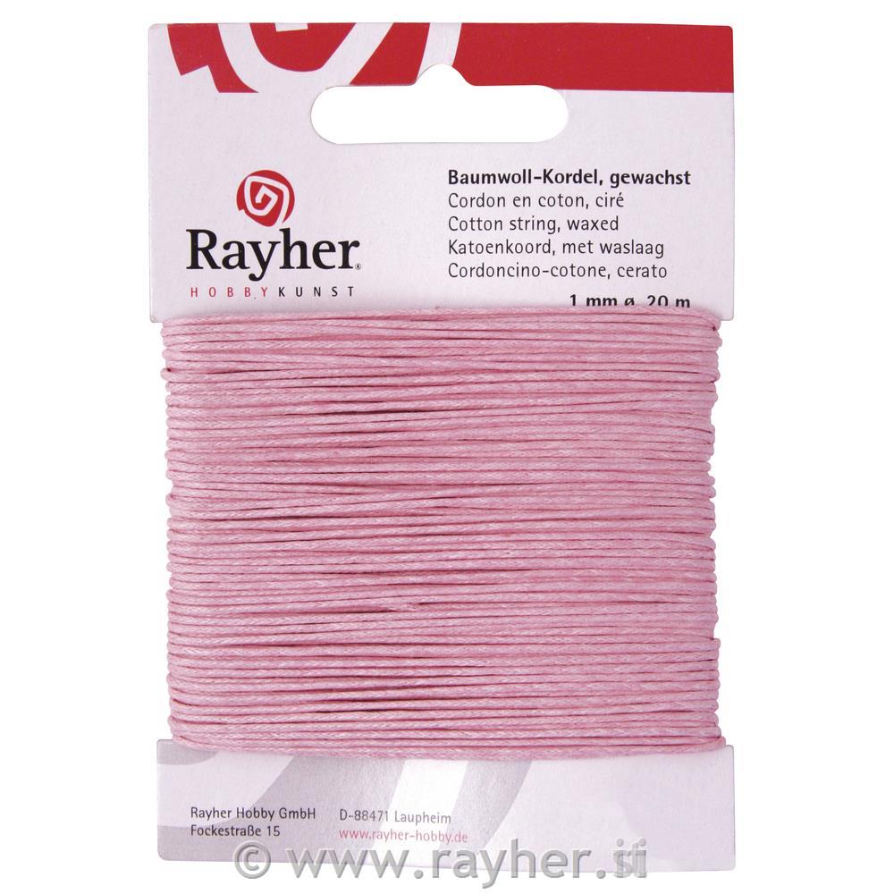 Vrvica bombažna, povoščena, svetlo roza, 1 mm, 20 m