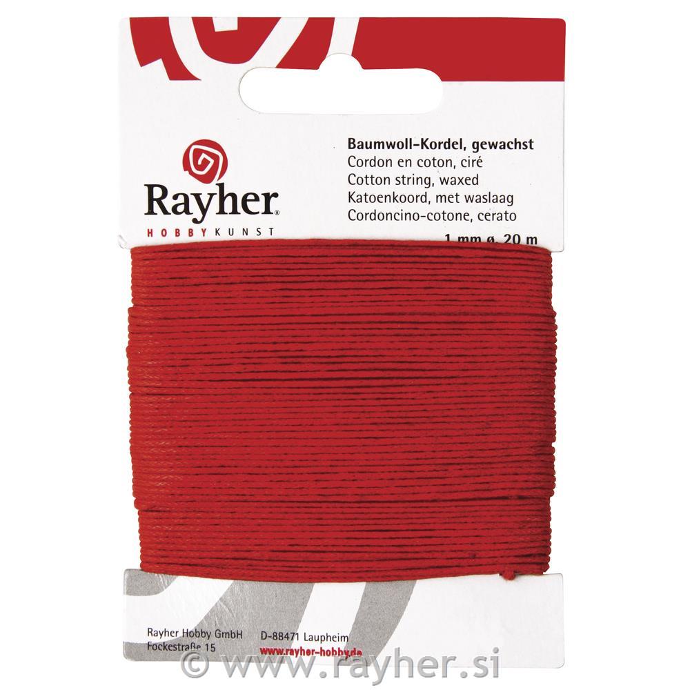 Vrvica bombažna, povoščena, rdeča, 1 mm, 20 m