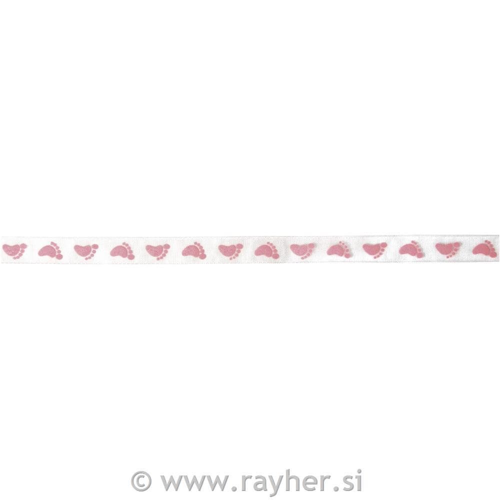 Trak organza: otroški odtisi, svetlo roza, 10 mm, 1 m