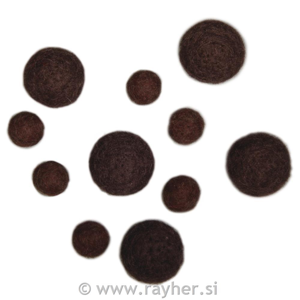 Filc kroglice, 1,3+2cm , rjave, 11 kosov