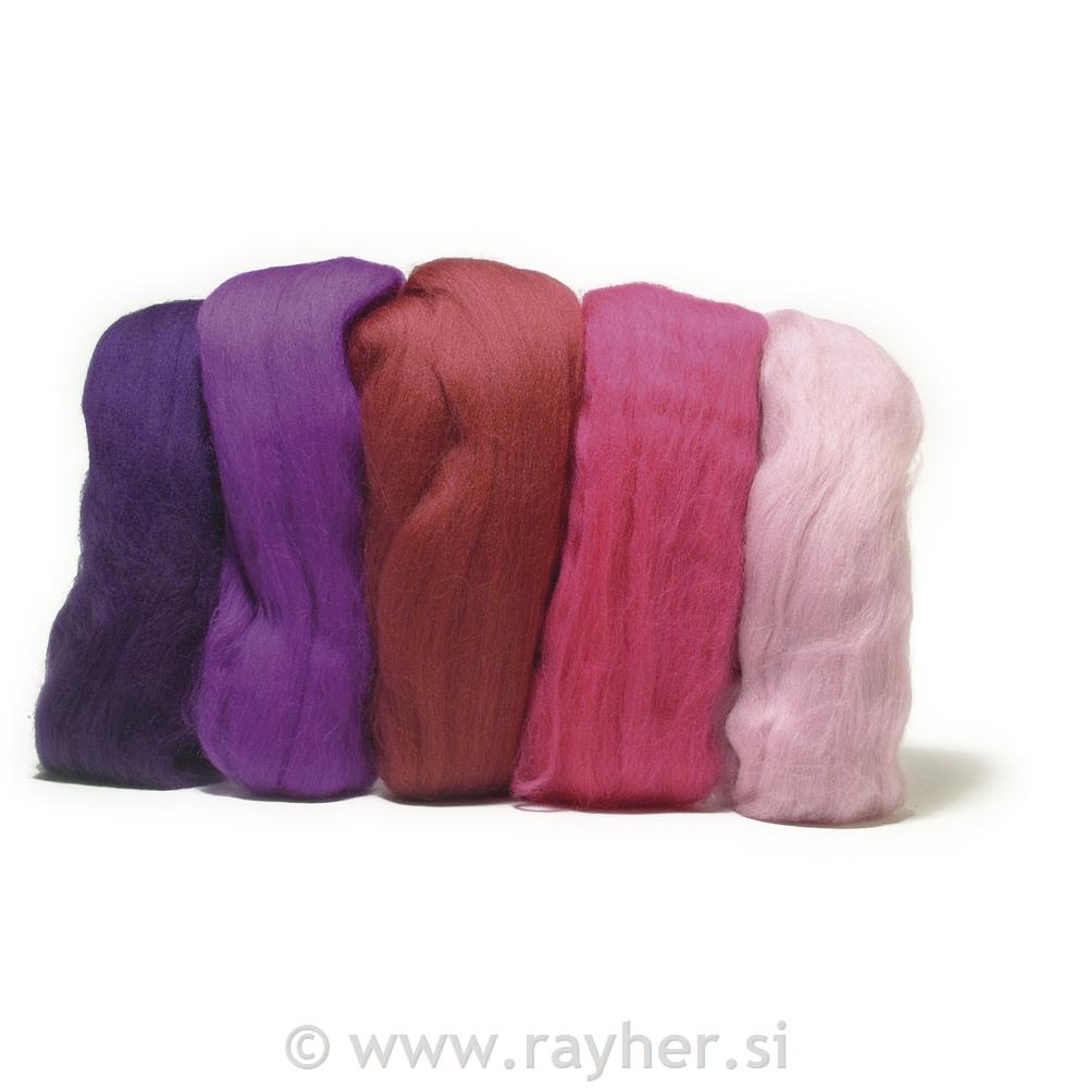 Volneno merino predivo, česano, zelo gladko, roza odtenki, 18 mic, 5 x 10g