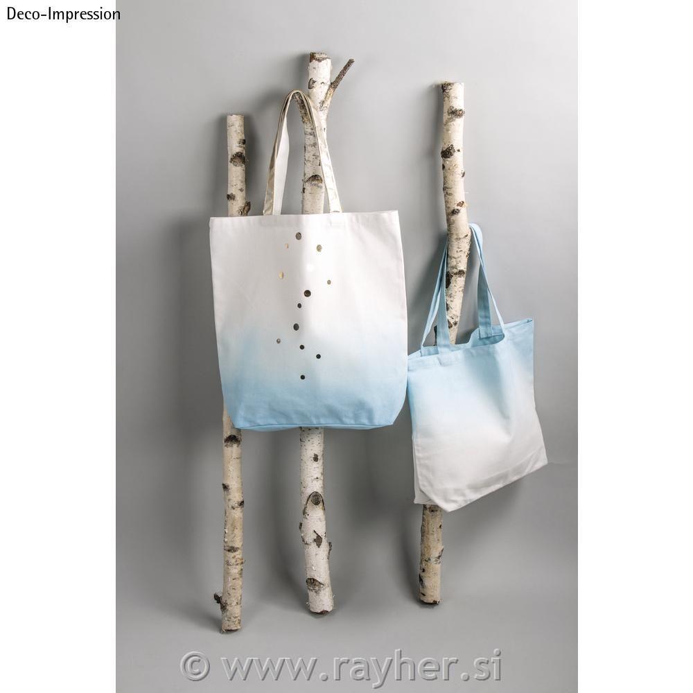 Dekoracijo na torbi lahko naredite s šabloniranjem , barvanjem, žigosanjem, z učinkom tie dye …V kombinaciji s tekstilnimi dodatki, kot so rese in pomponi, nastajajo unikatne kreacije, praktični spremljevalci in elegantni enkratni izdelki.