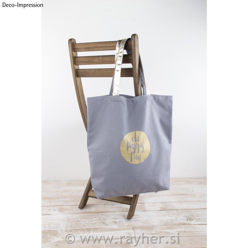 Fashion shopper vrečka, 46 x 46 x 11 cm (širina/višina/globina), na voljo v beli ali trendi sivi barvi, ročaji so prevlečeni s sintetičnim usnjem zlate barve, ročaj je dolg 24 cm. Blago je pralno pri 30 °C (nežen cikel), likano (nizka temperatura, 110 °C), primerno za sušenje v sušilnem stroju (nizka temperatura, nežno). Ni mogoče beliti ali kemično čistiti.