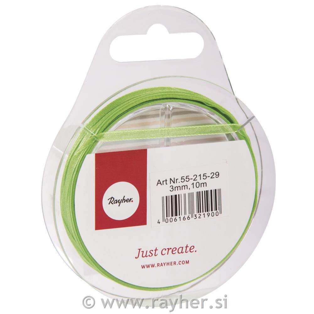 Trak organza, zelen, 3mm, 10m